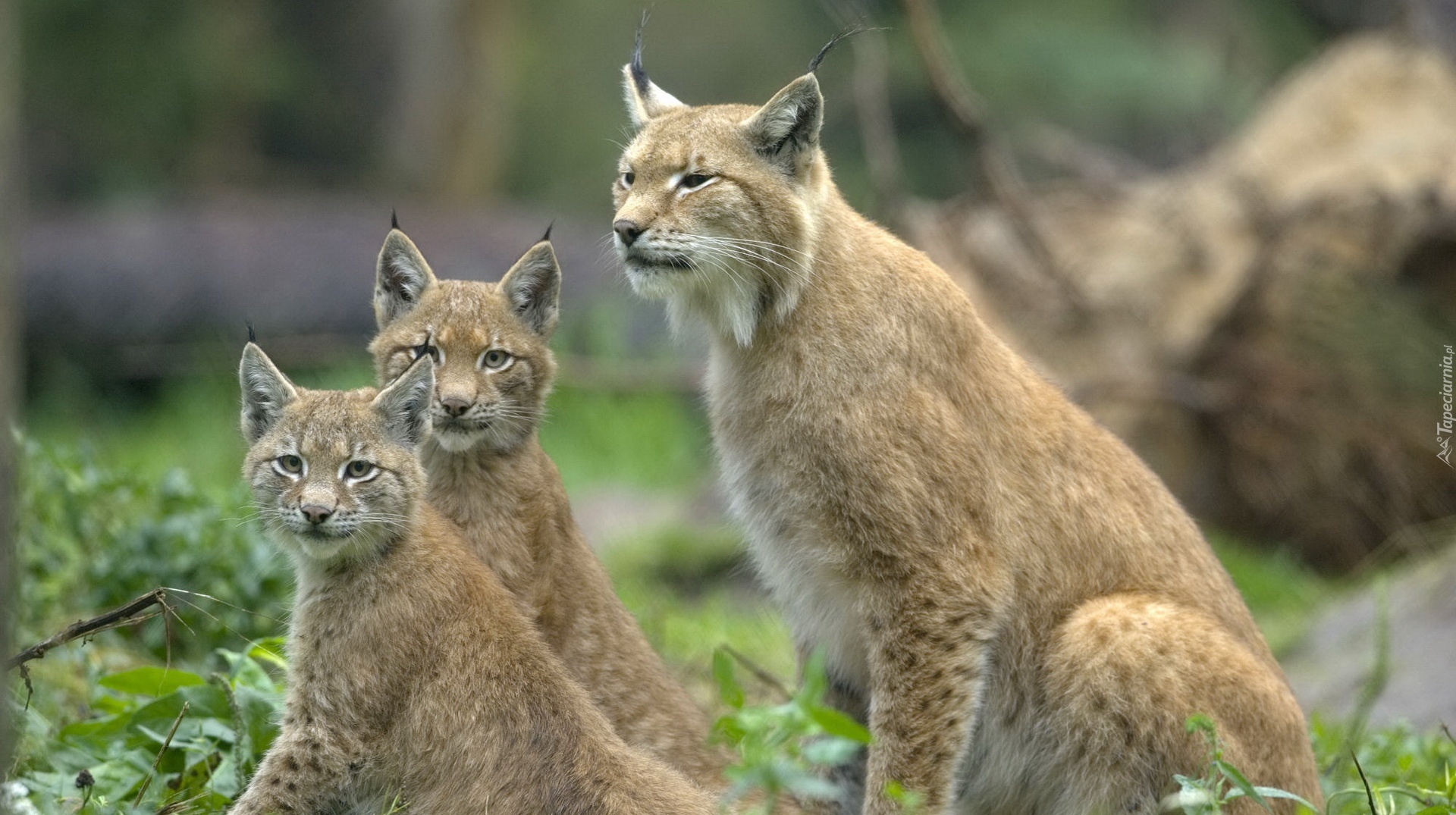 Edytor tapety: Trzy, Rysie, Gałązki, Zieleń