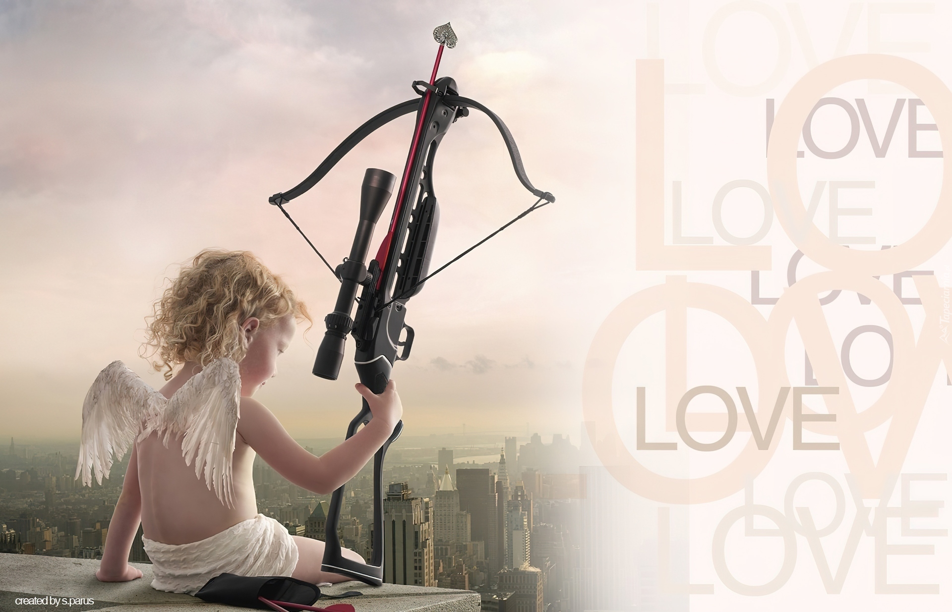 Edytor tapety: Amorek, Kusza, Dach, Miłość