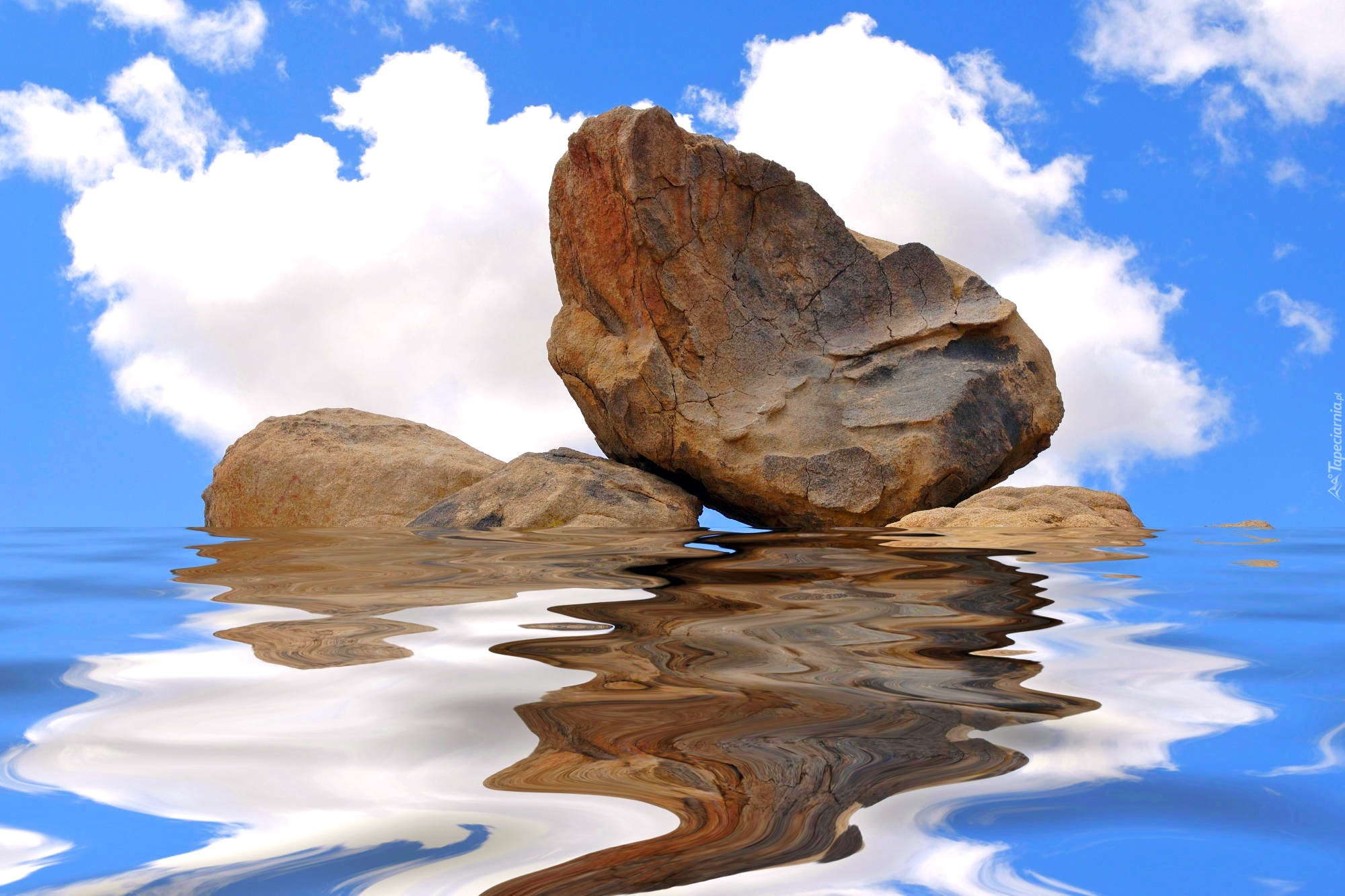 Edytor tapety: Skały, Białe, Chmury, Tafla, Wody