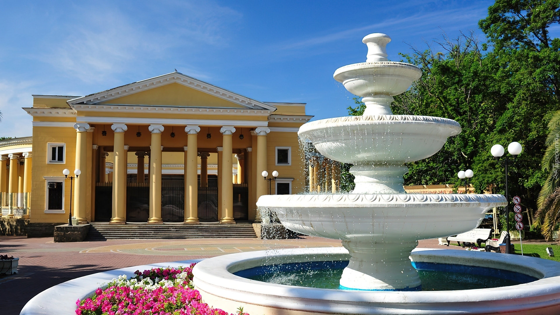 Edytor tapety: Pałacyk, Wejście, Kolumny, Piętrowa, Fontanna