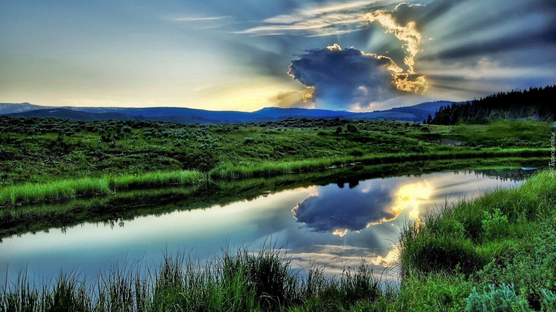 Edytor tapety: Rzeka, Chmura, Trawy