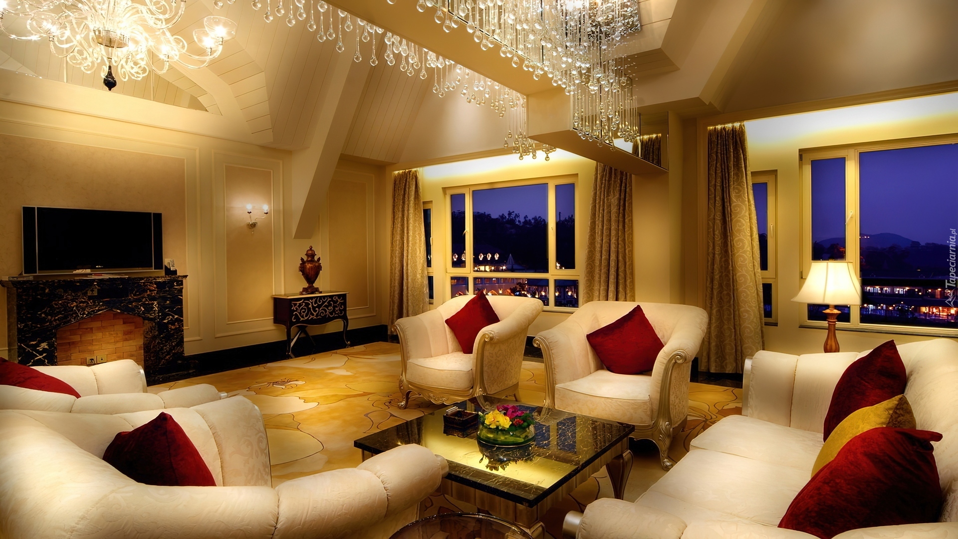 Edytor tapety: Salon, Kanapa, Okna, Kominek