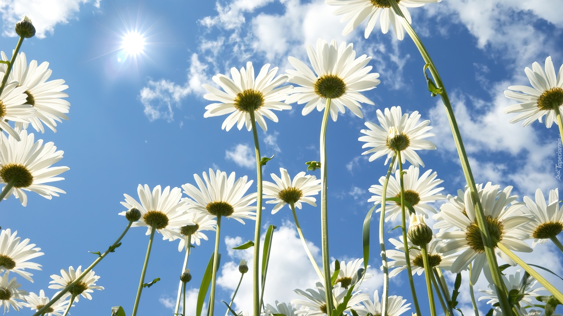 Edytor tapety: Błękitne, Niebo, Margerytki