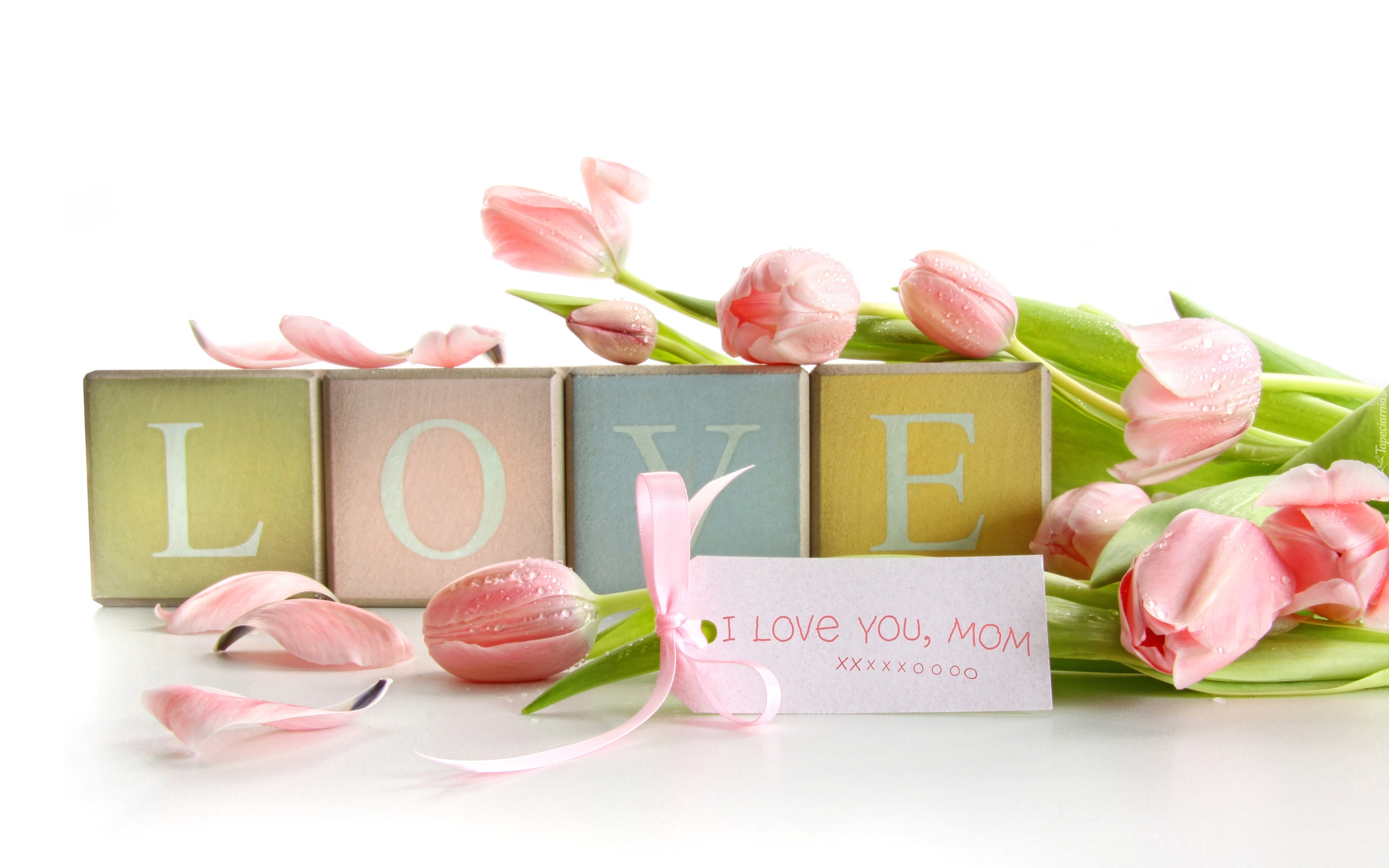 Edytor tapety: Różowe, Tulipany, Klocki, Literki