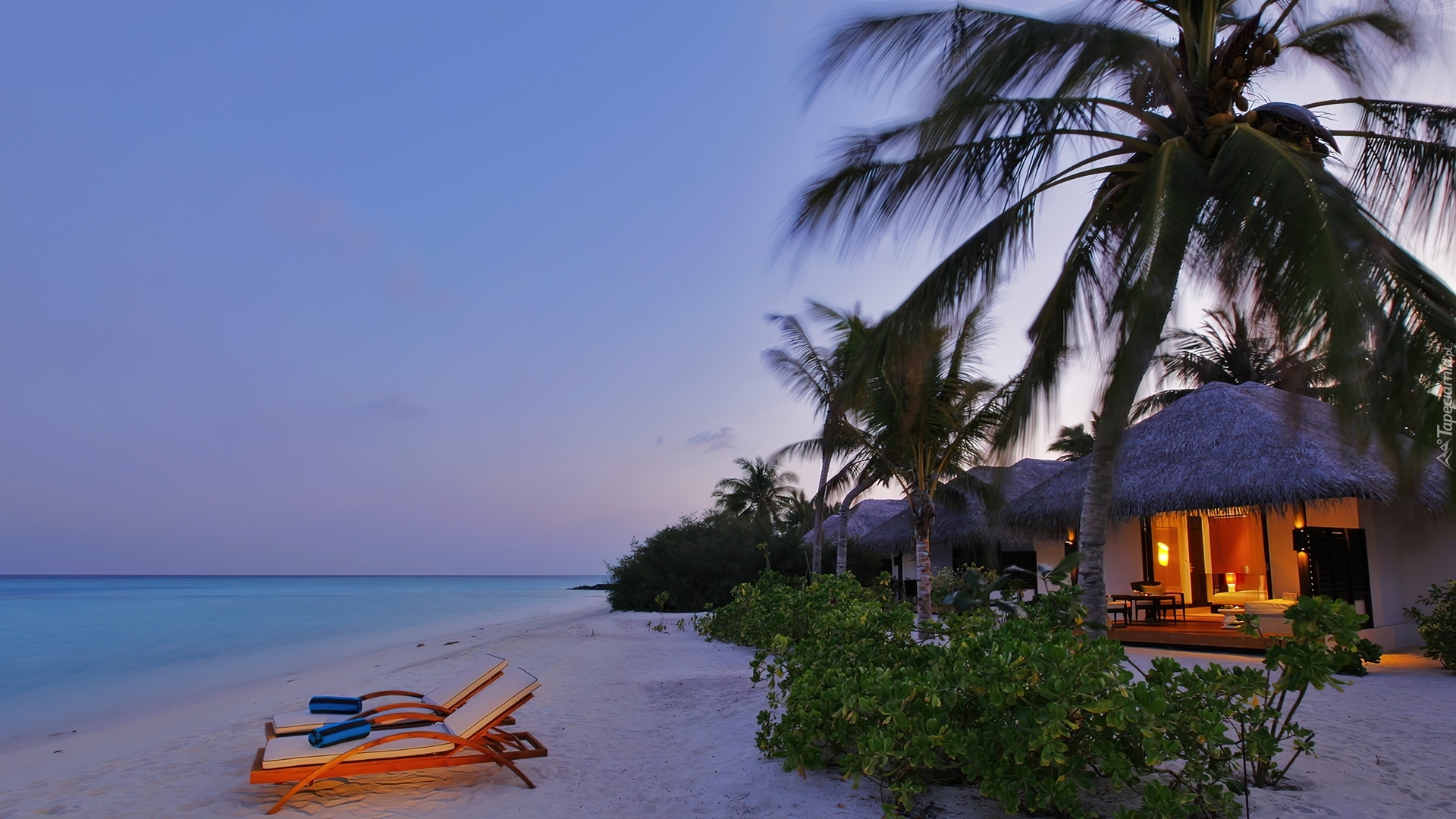 Edytor tapety: Piasek, Palmy, Leżaki, Domki, Wakacje