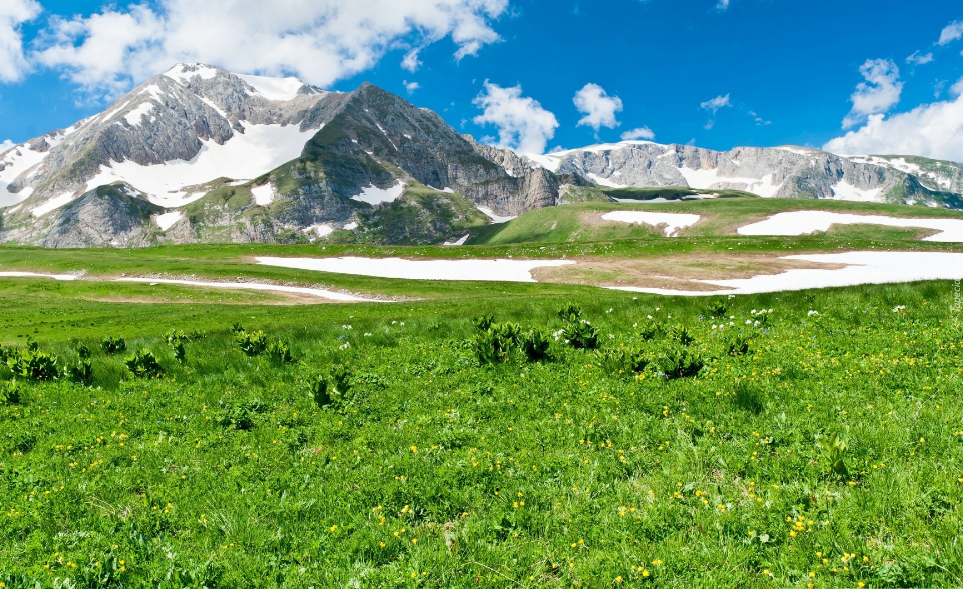 Edytor tapety: Trawa, Chmury, Góry