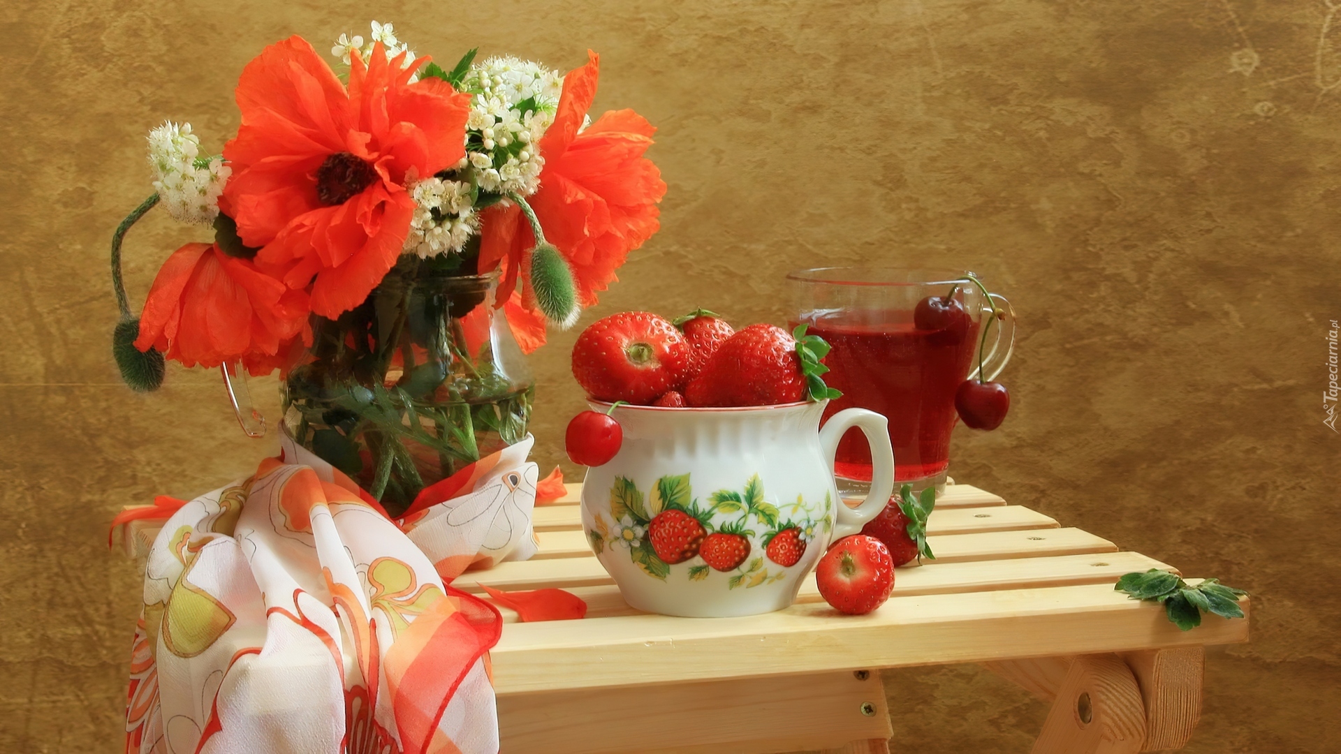 Edytor tapety: Bukiet, Polnych, Kwiatów, Truskawki