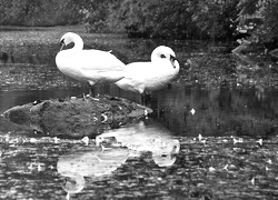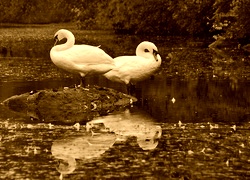 Edytor tapety: Jesień, Dwa, Łabędzie, Woda