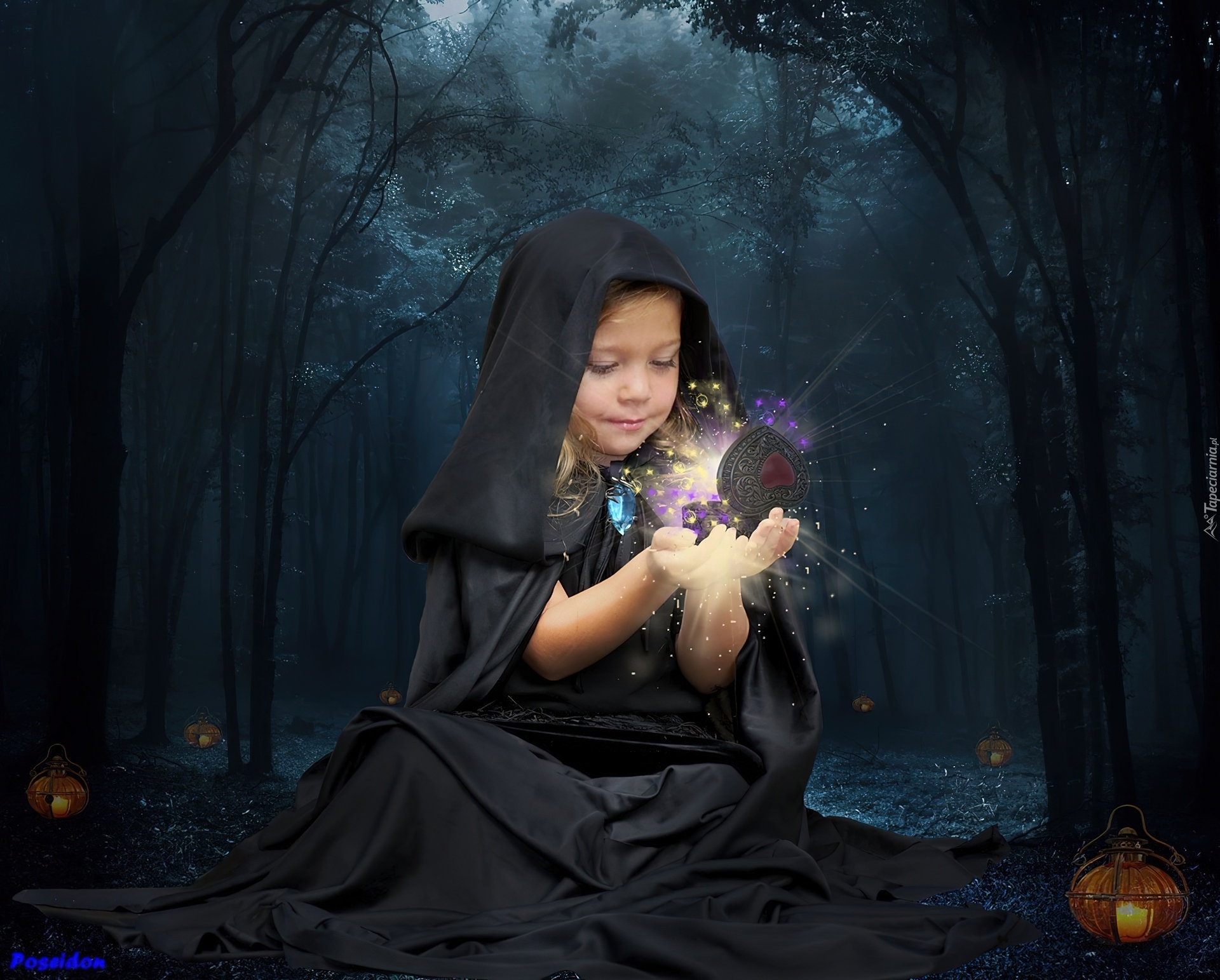 Edytor tapety: Dziewczynka, Szkatułka, Las