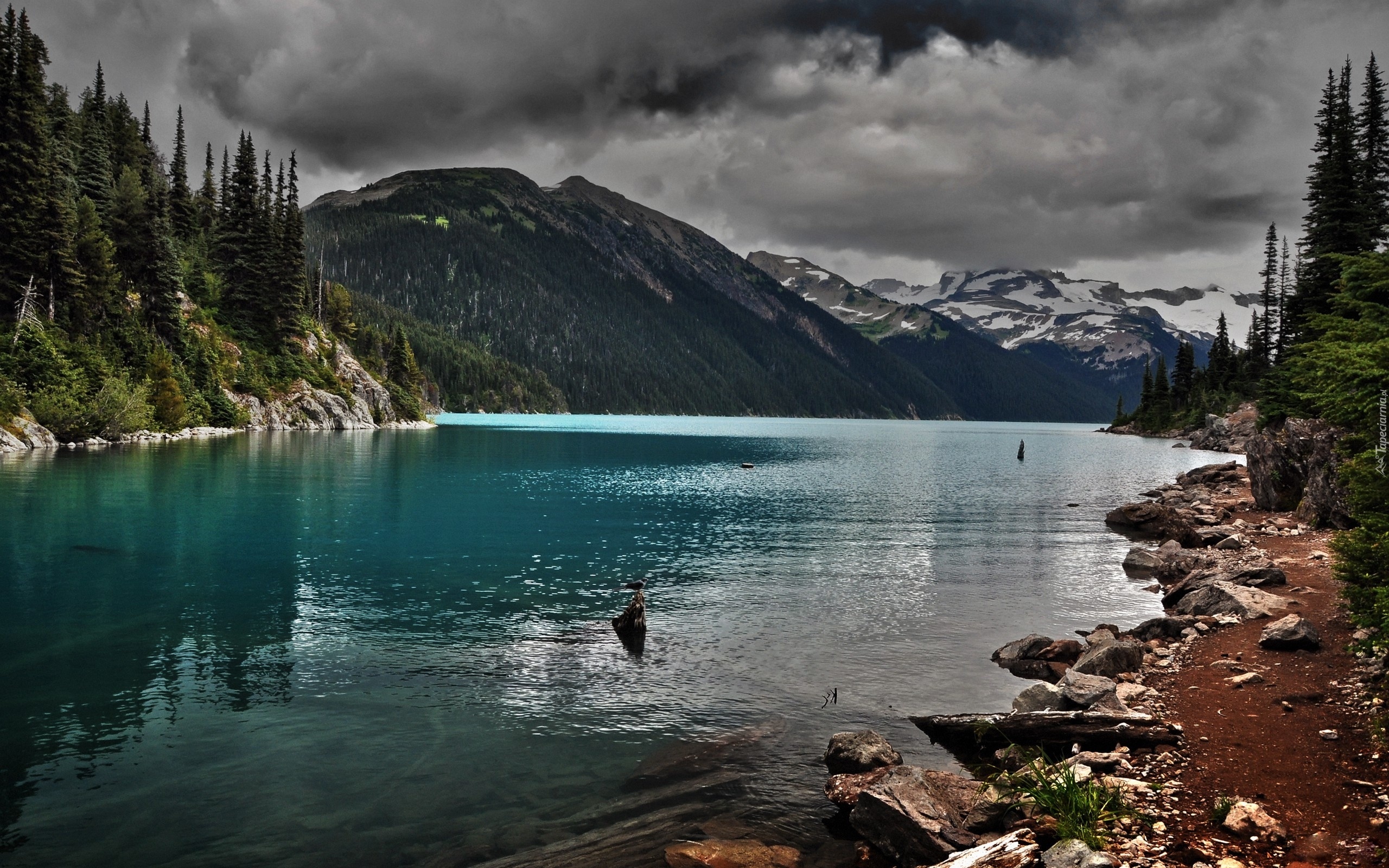 Edytor tapety: Rzeka, Góry, Las, Chmury
