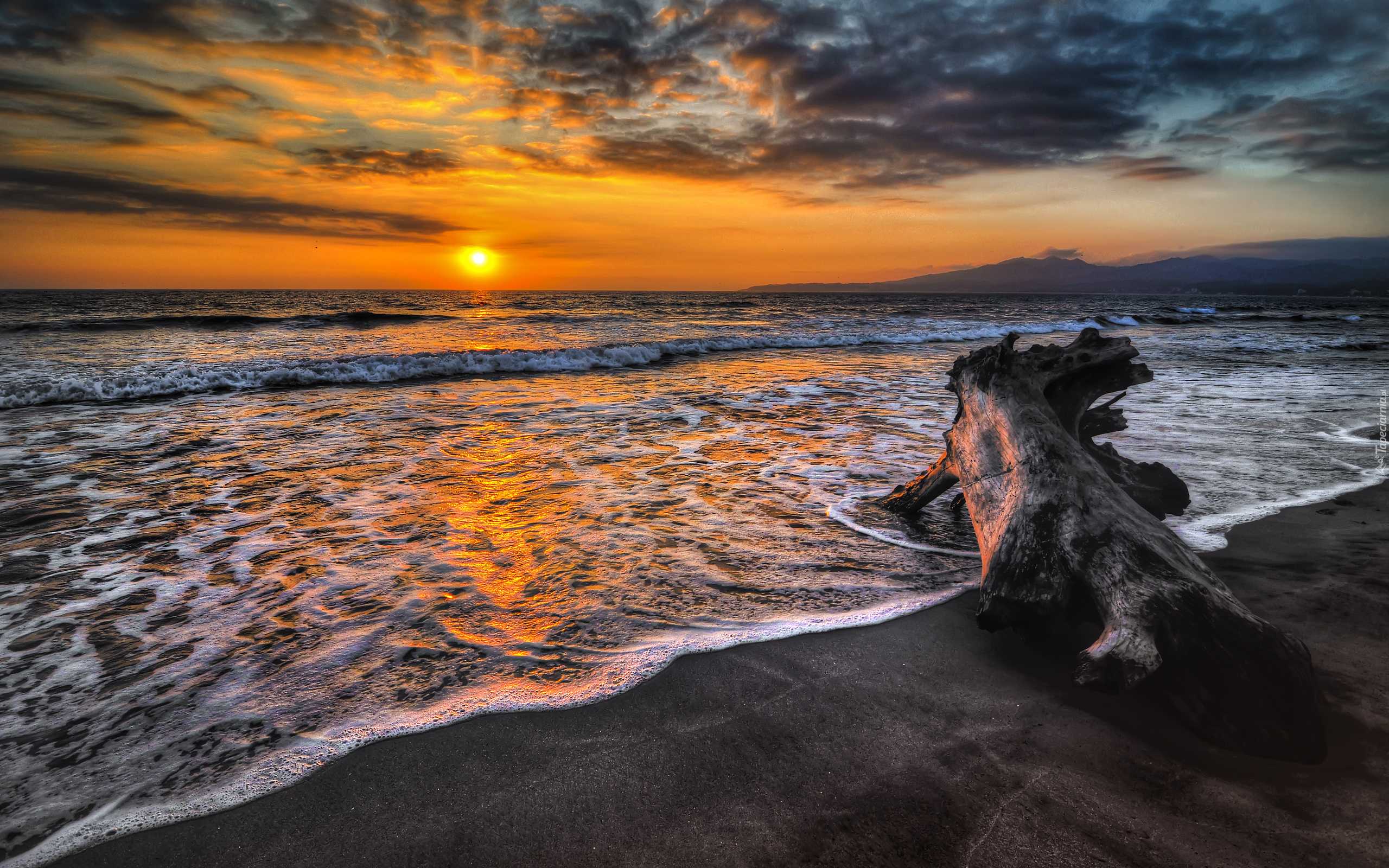 Edytor tapety: Chmury, Morze, Zachodzące, Słońce, Fale, Piasek