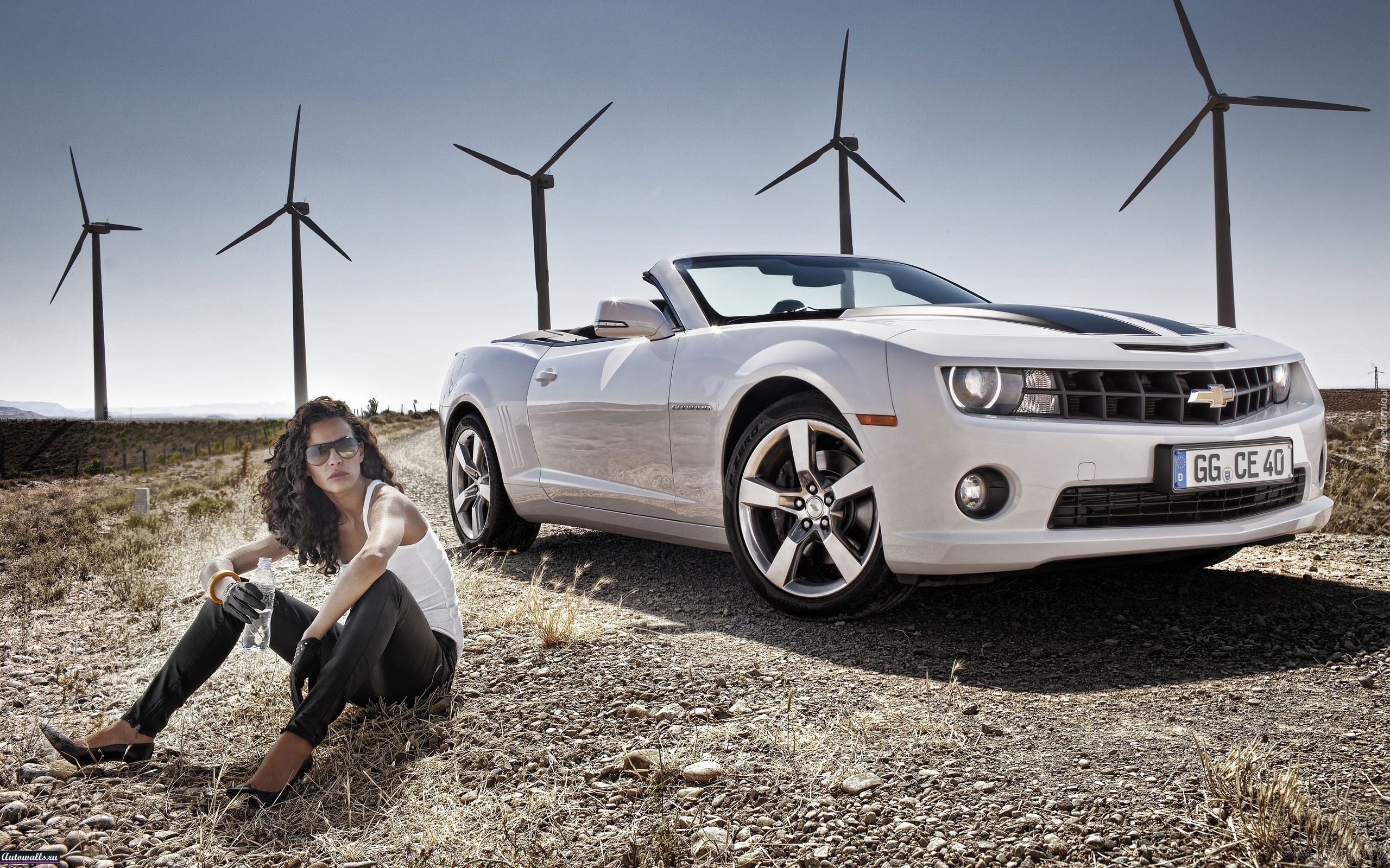 Edytor tapety: Biały, Chevrolet, Camaro, Cabrio, Kobieta