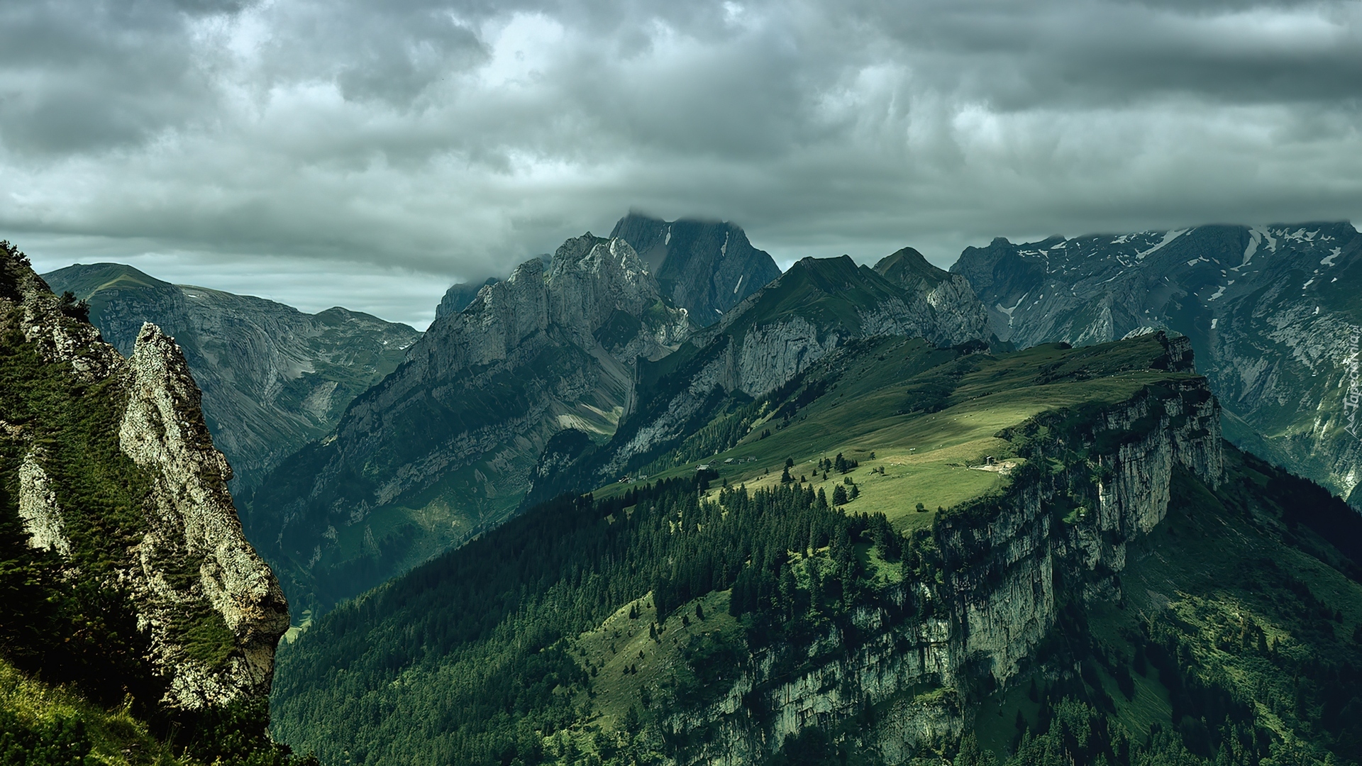Edytor tapety: Szczyty, Gór, Polany, Burzowe, Chmury