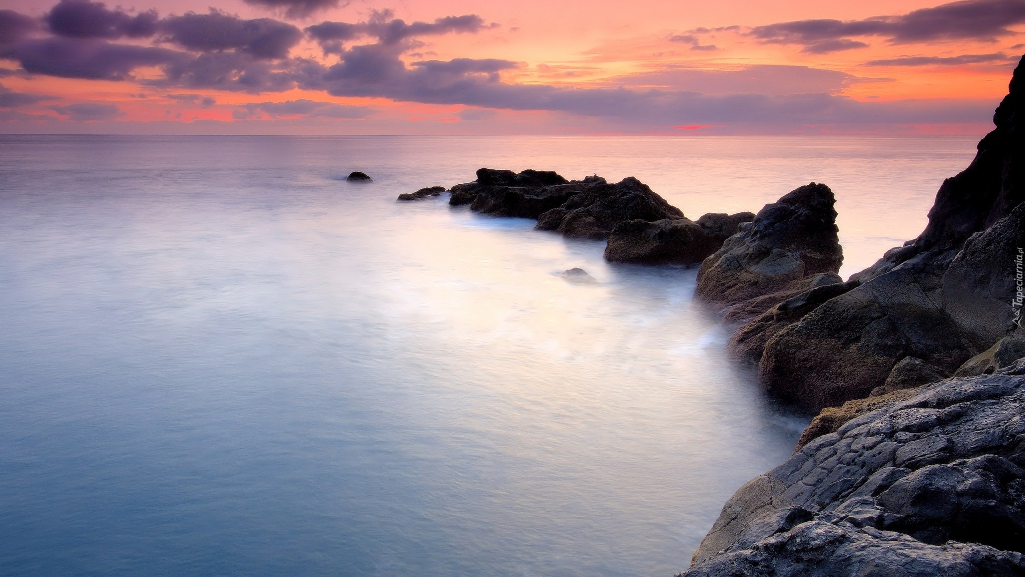 Edytor tapety: Zachód, Słońca, Morze, Skały