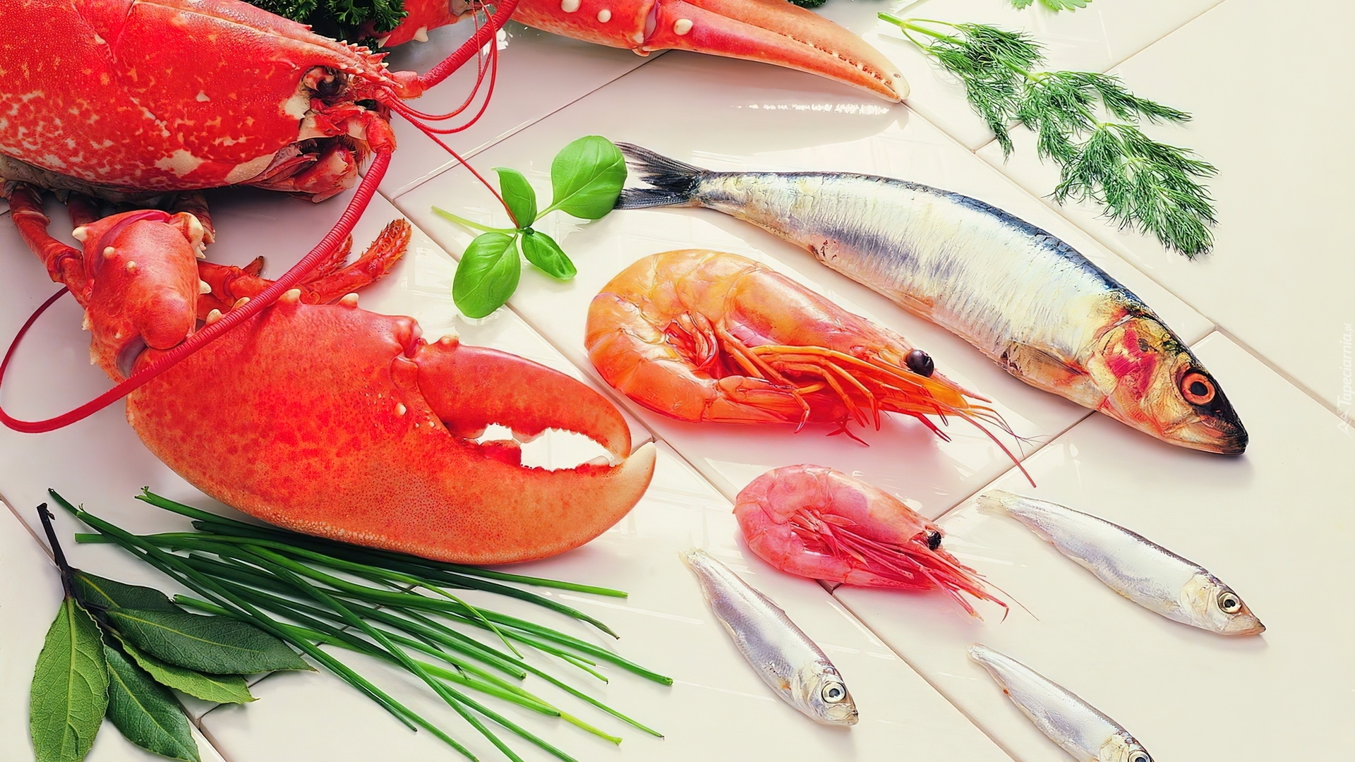 Edytor tapety: Owoce, Morza, Ryby, Krewetki