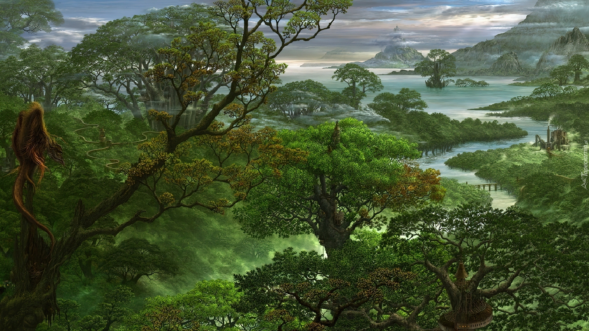 Edytor tapety: Rzeka, Jezioro, Drzewa, Góry, Chmury