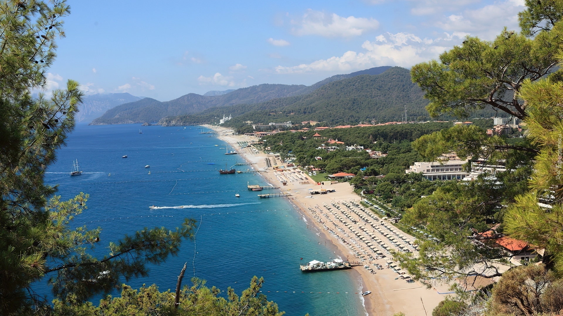 Edytor tapety: Wybrzeże, Plaże, Hotel, Morze, Góry