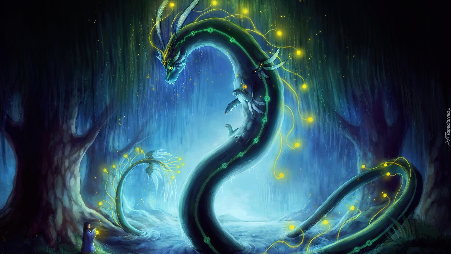 Edytor tapety: Jaskinia, Smok, Dziewczynka, Światło
