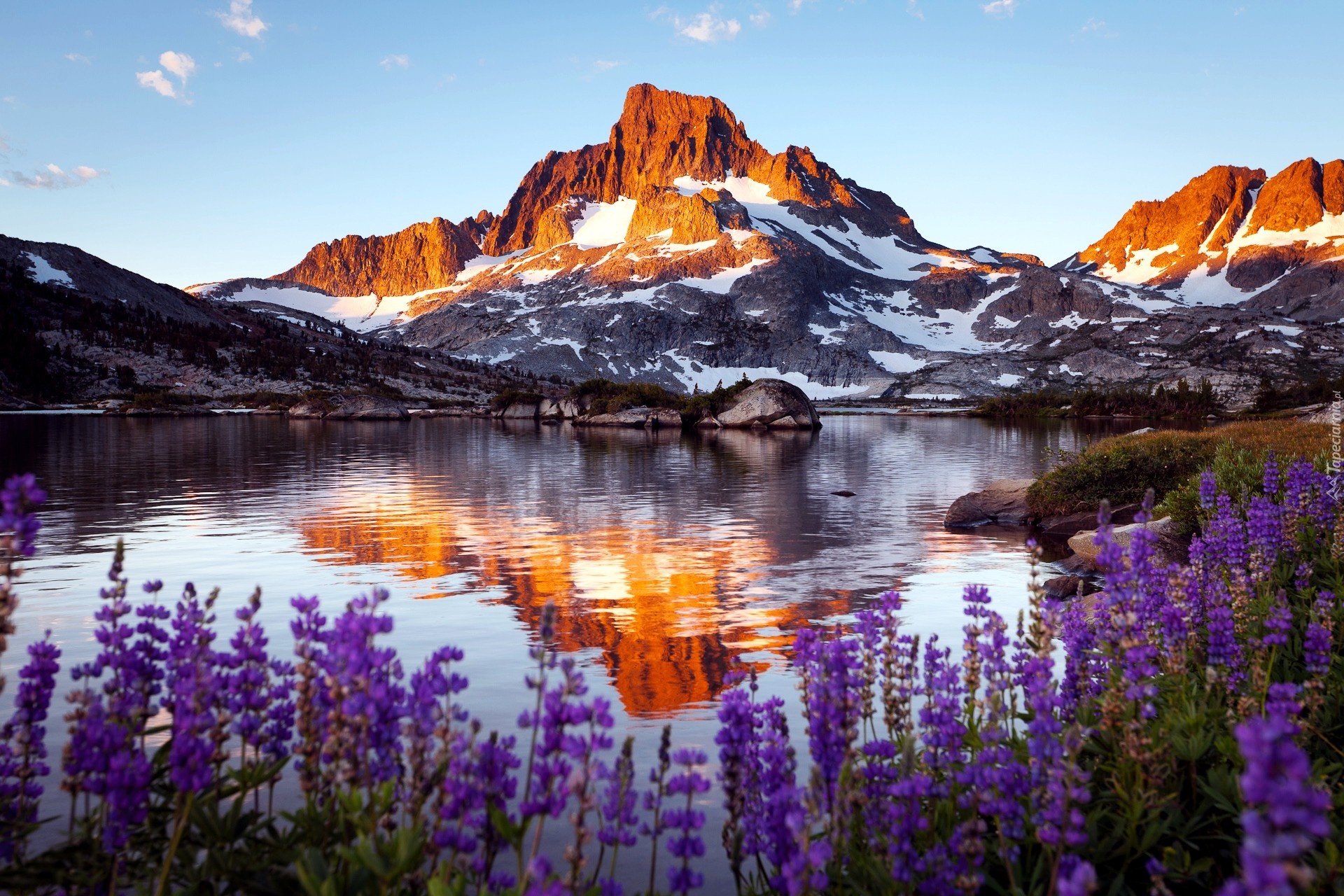Edytor tapety: Góry, Śnieg, Woda, Kwiaty