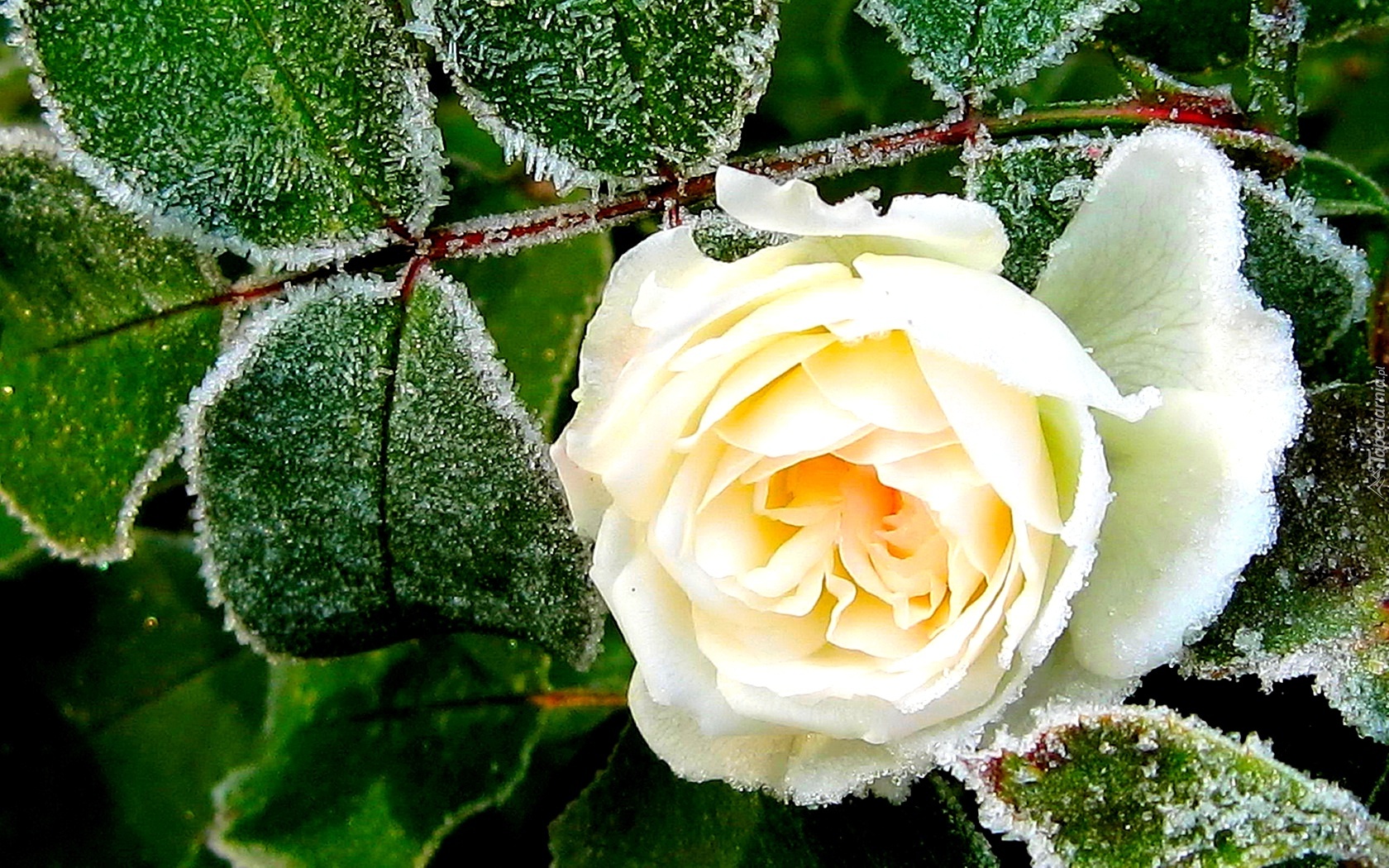 Edytor tapety: Zielone, Zmrożone, Listki, Róża