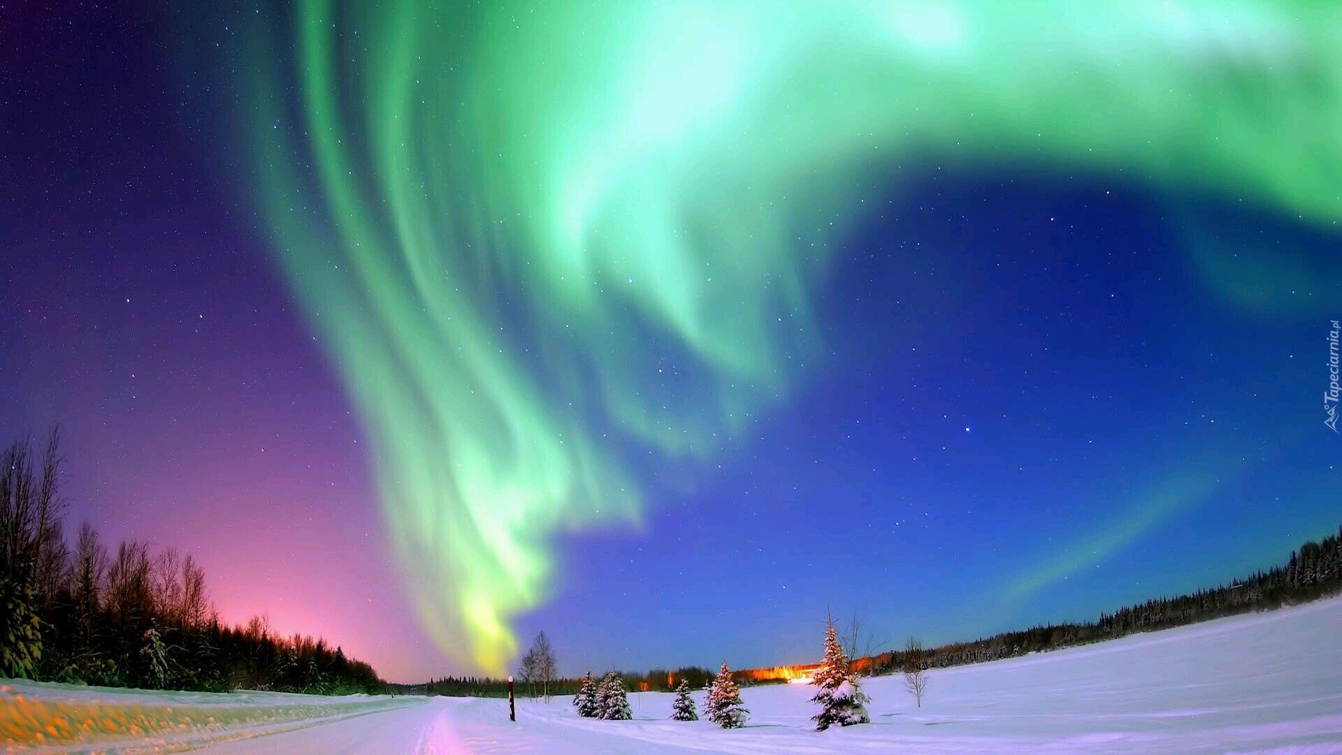 Edytor tapety: Zorza, Polarna, Droga, Gwieździste, Niebo