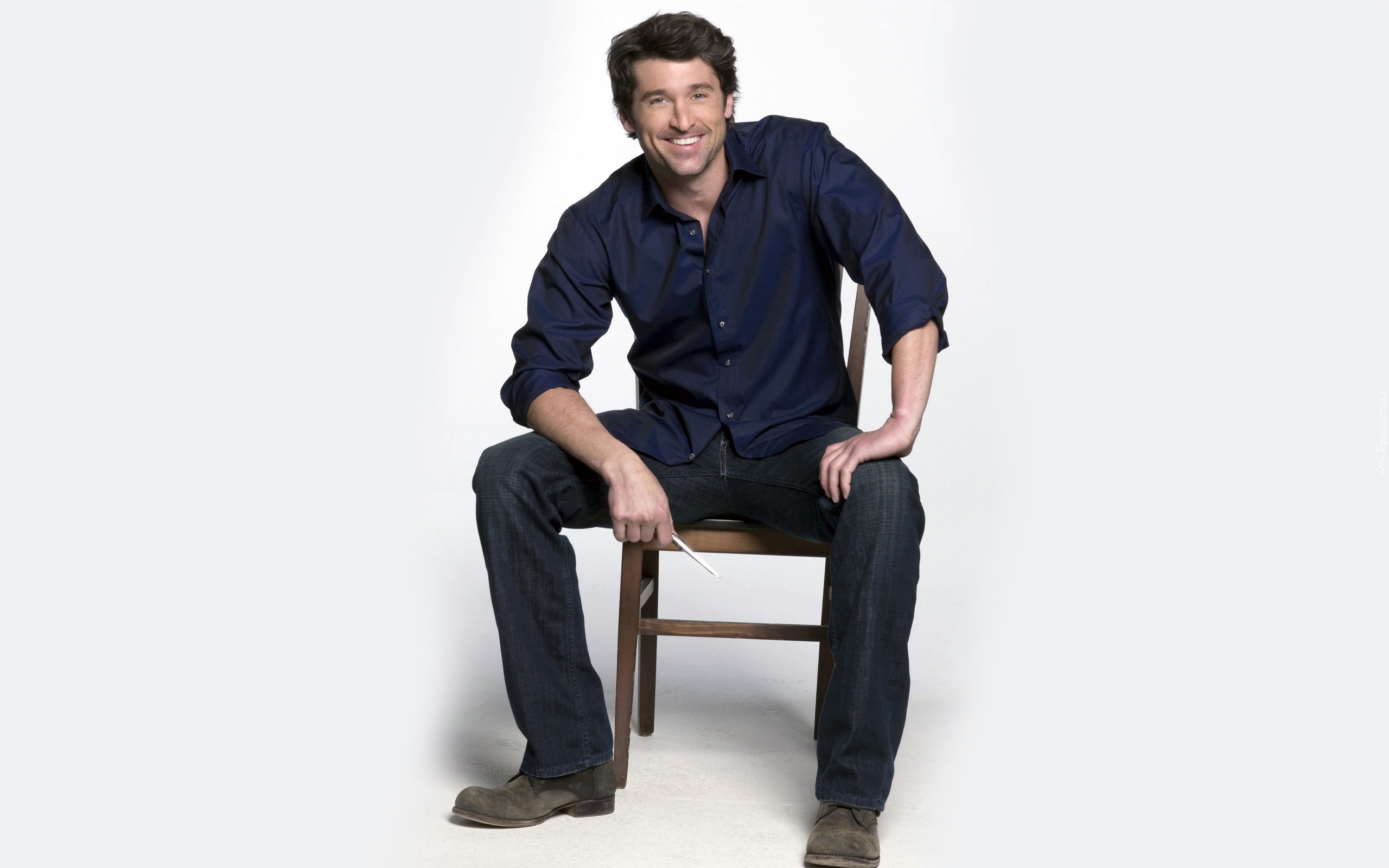 Edytor tapety: Patrick Dempsey, Aktor, Krzesło, Niebieska, Koszula