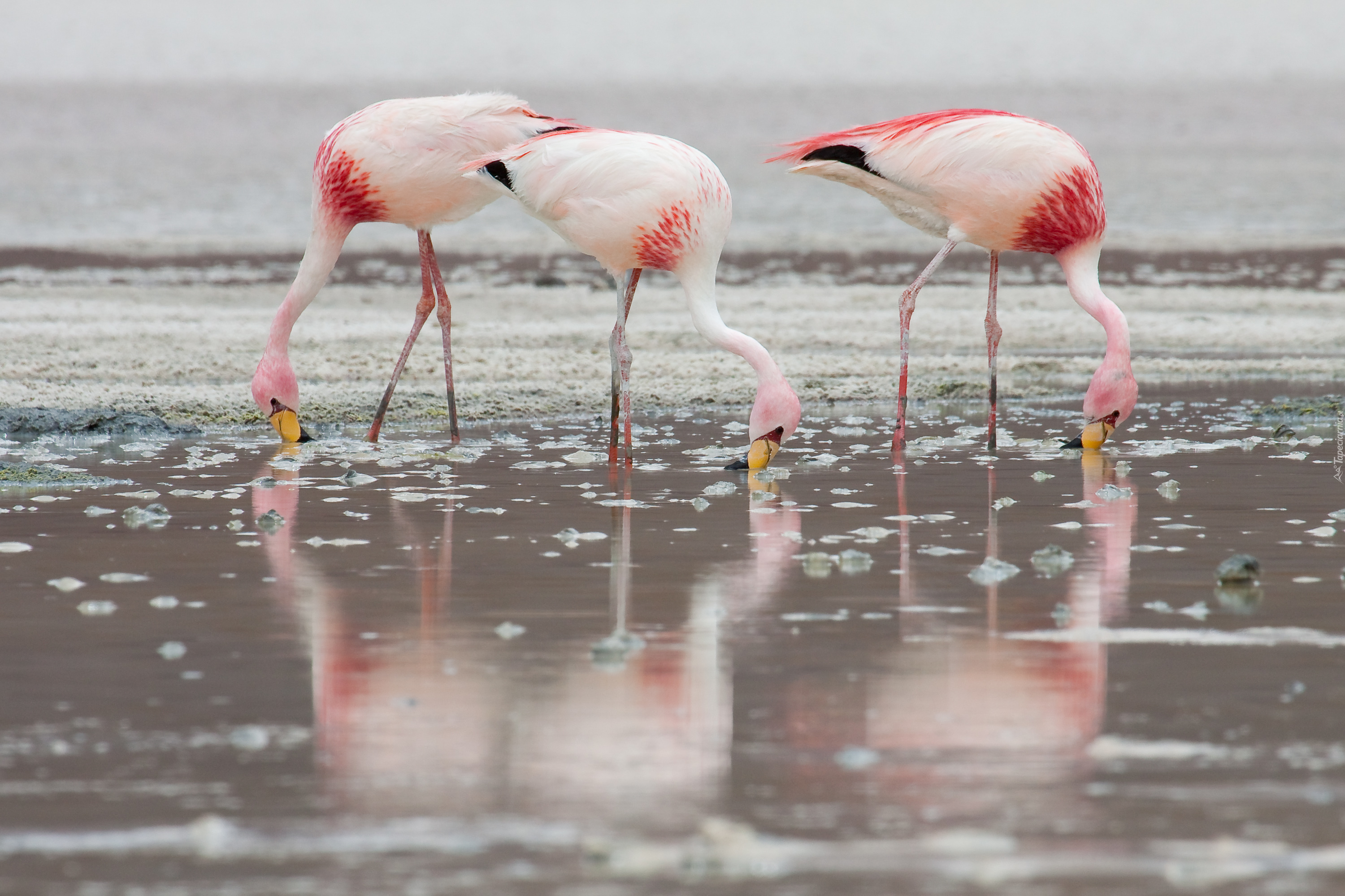 Edytor tapety: Pochylone, Flamingi Krótkodziobe, Woda, Odbicie