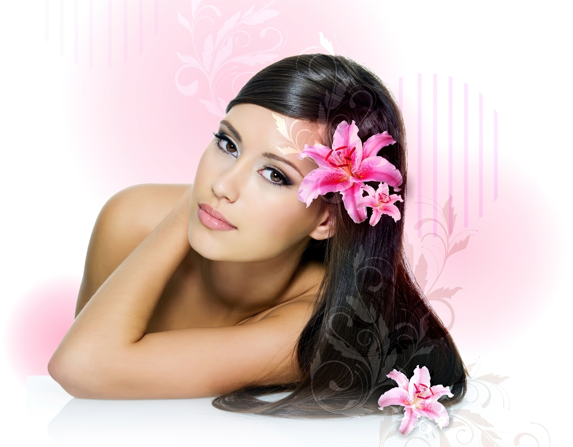 Edytor tapety: Kobieta, Makijaż, Lilie