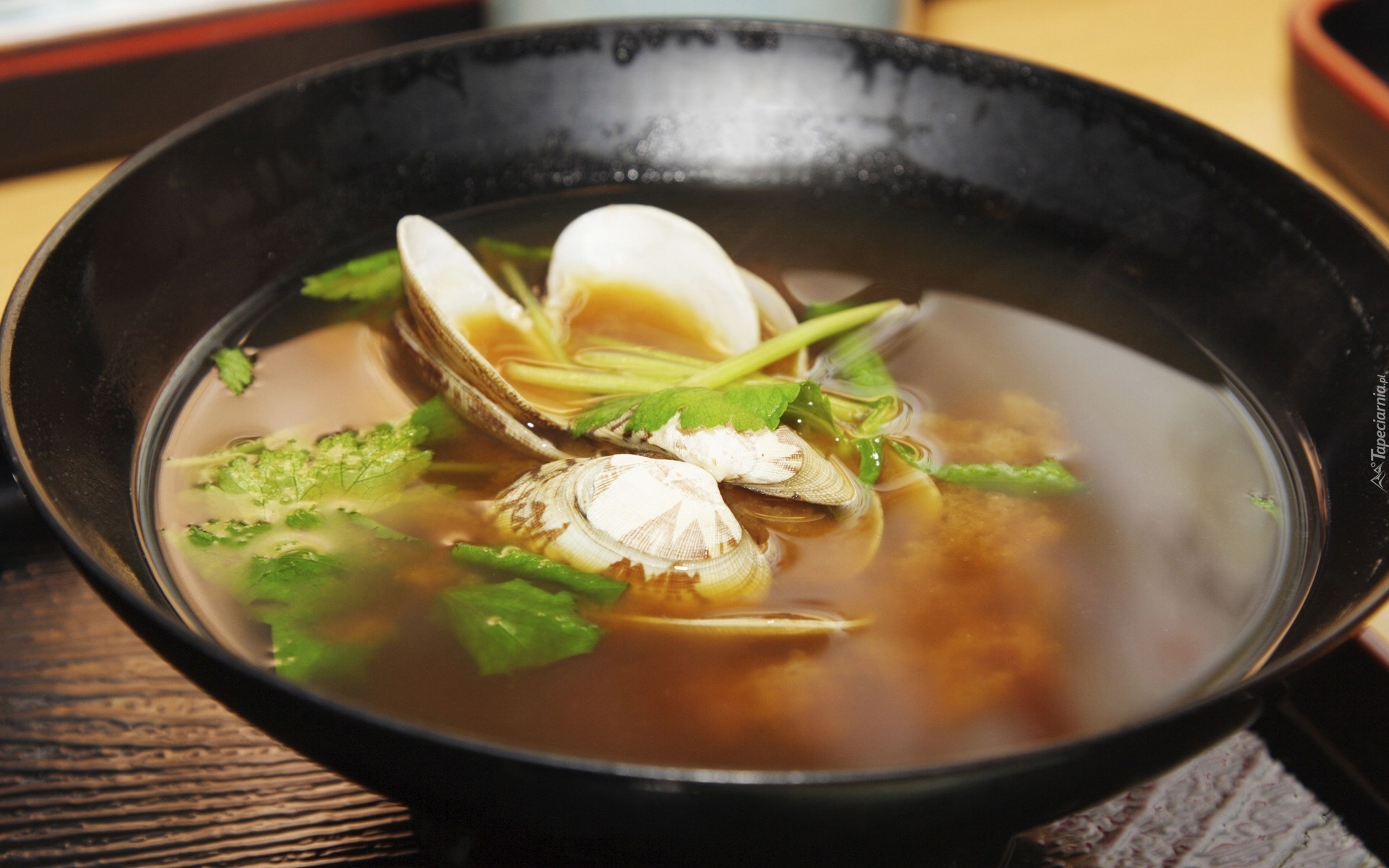 Edytor tapety: Kuchnia, Japońska, Zupa, Małże
