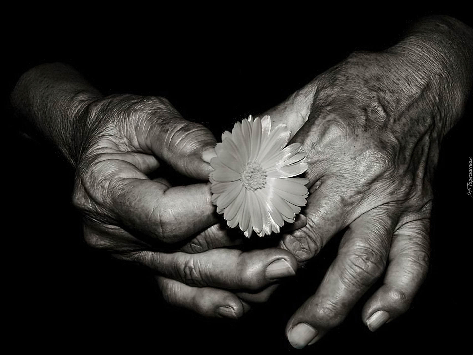 Edytor tapety: Stare, Spracowane, Dłonie, Margerytka