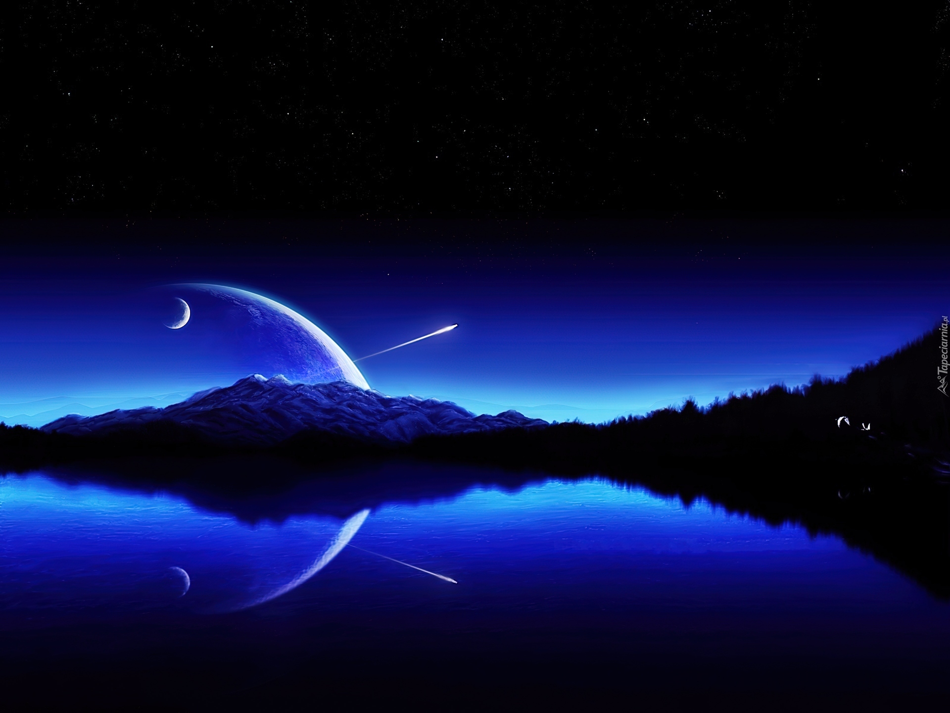 Edytor tapety: Niebo, Nocą, Księżyc, Jezioro