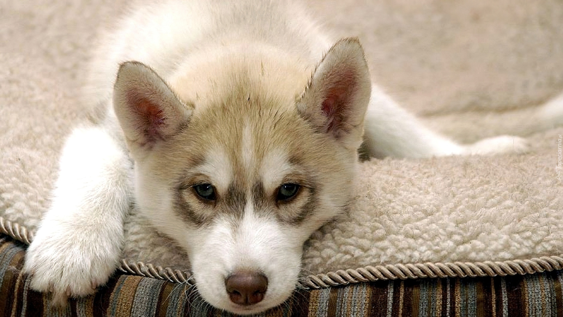 Edytor tapety: Kocyk, Leżący, Szczeniak, Husky