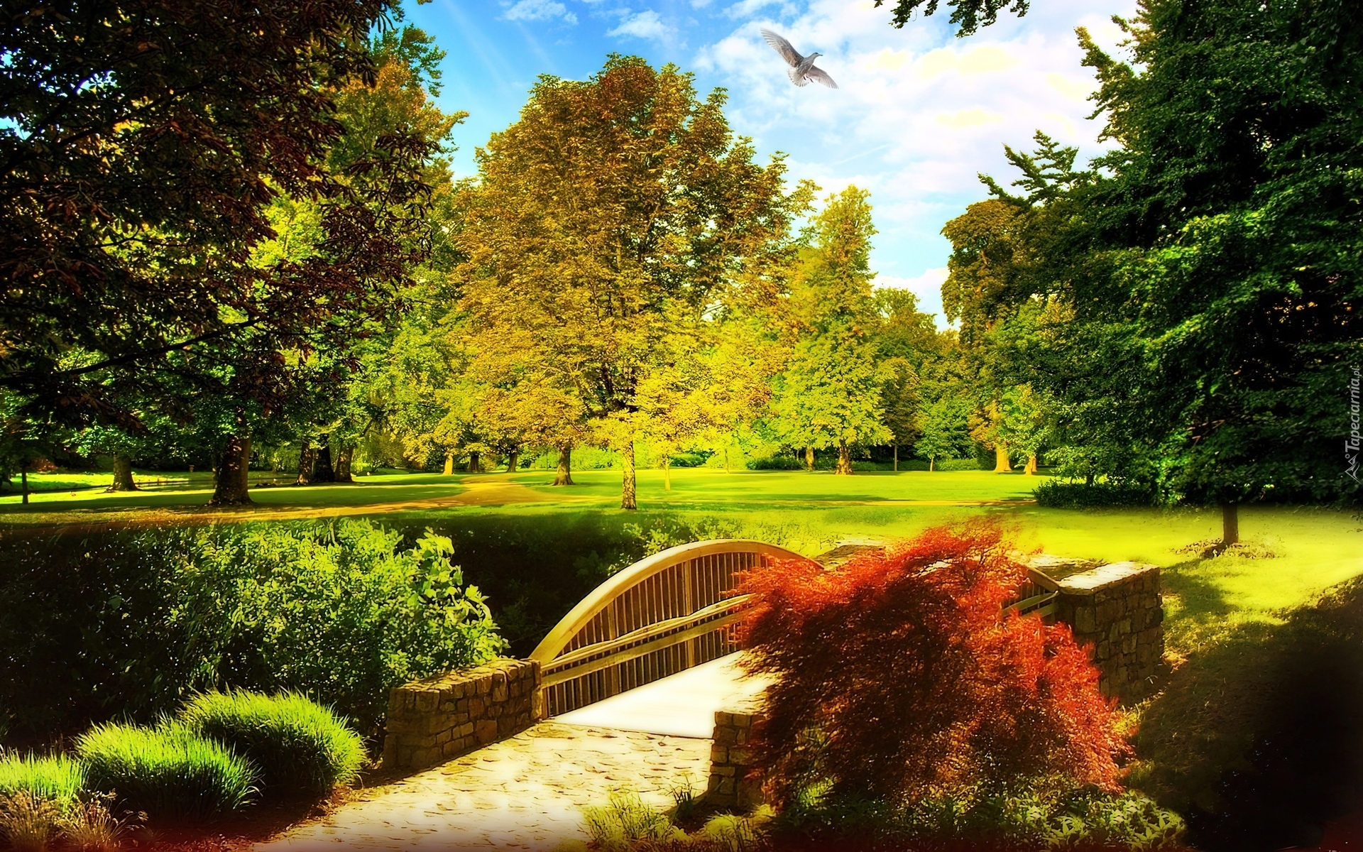 Edytor tapety: Park, Mostek, Lecący, Gołąb