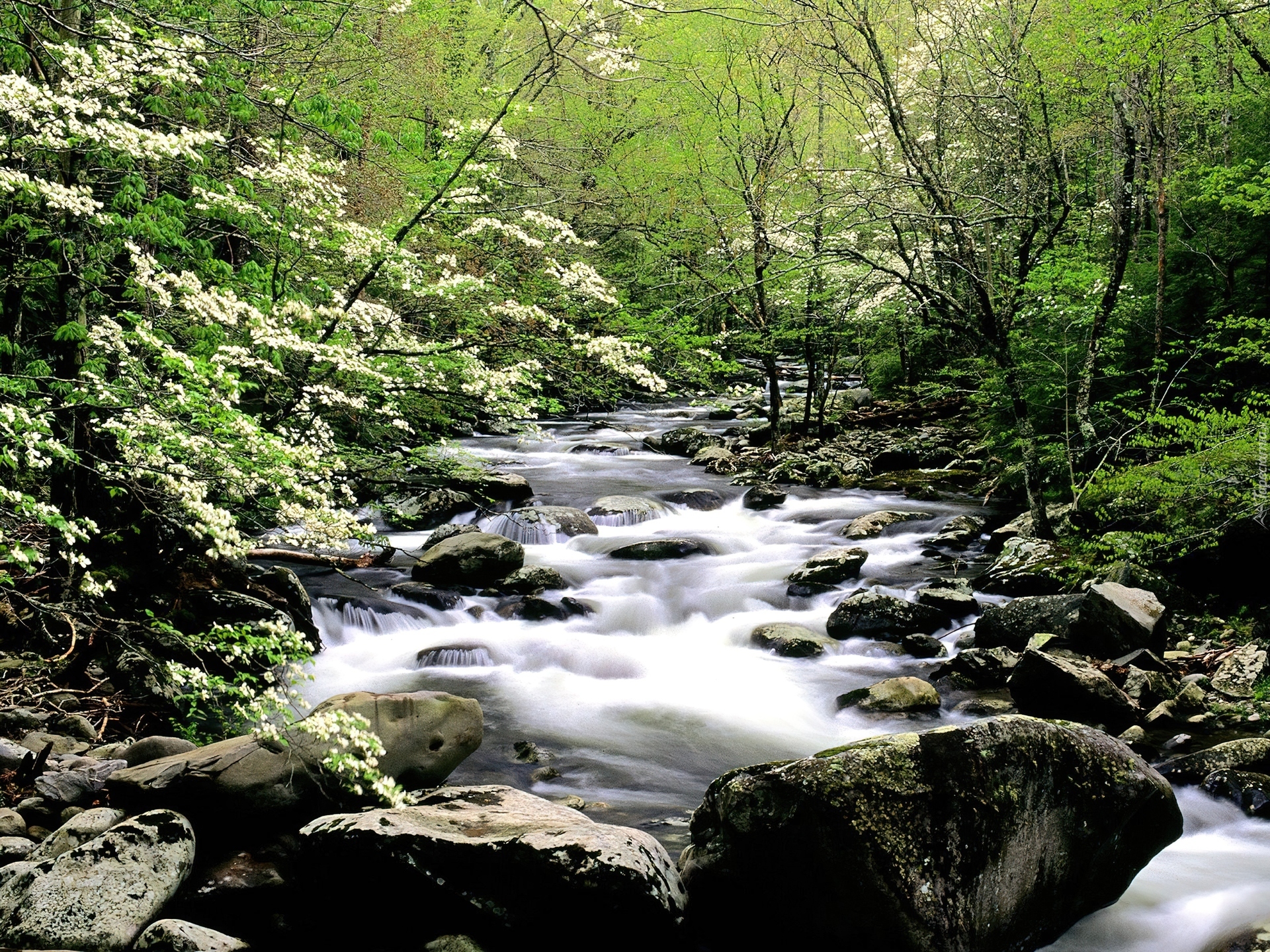 Edytor tapety: Strumień, Las, Kamienie, Wiosna