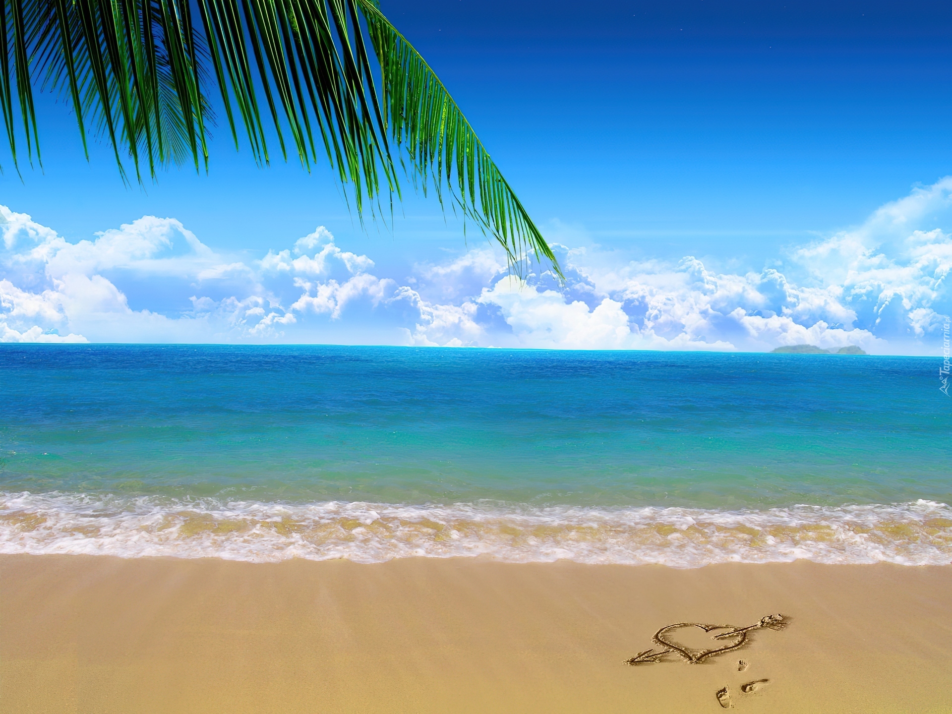 Edytor tapety: Morze, Rysunek, Serce, Piasek