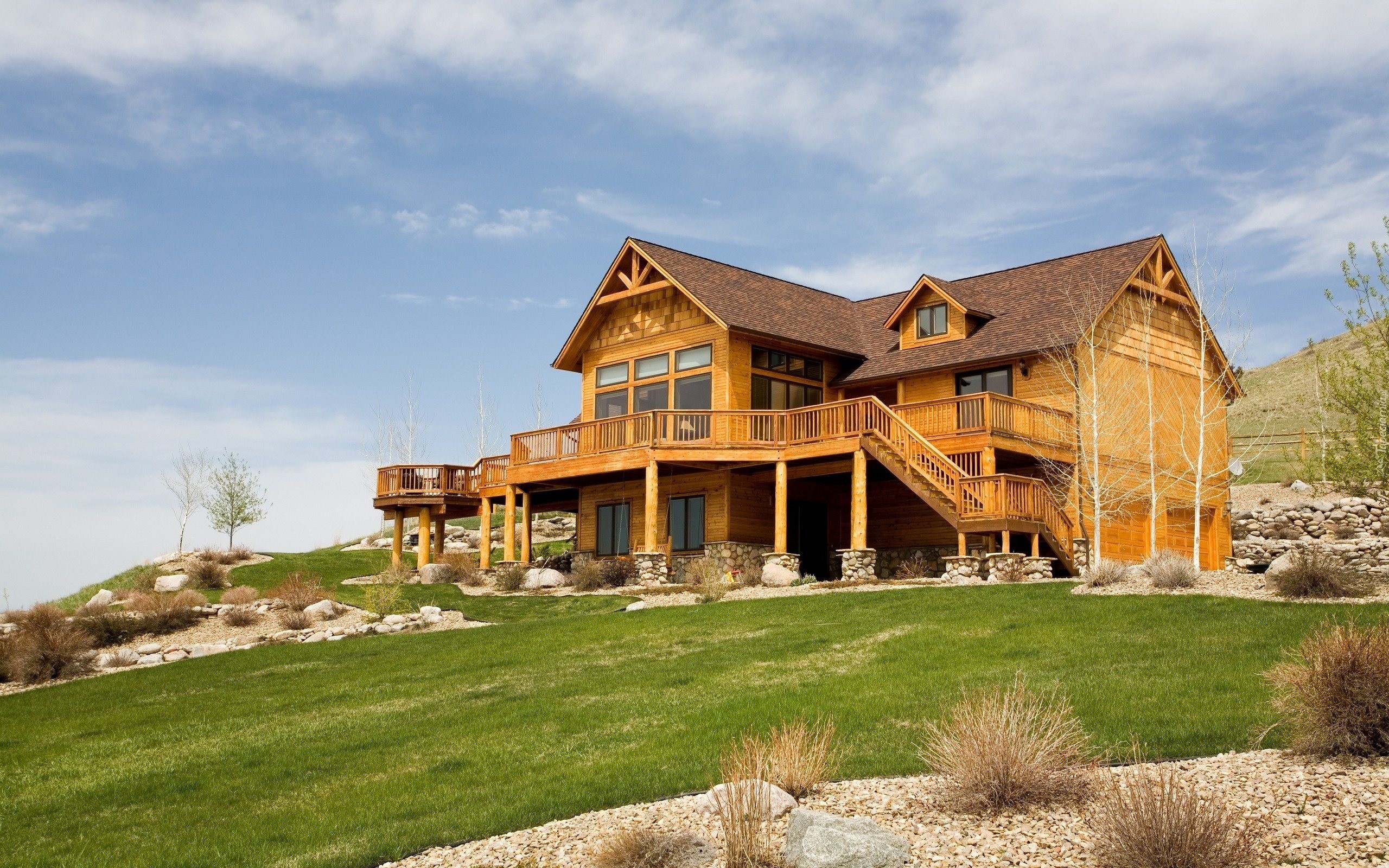 Edytor tapety: Dom, Drewniany, Balkony