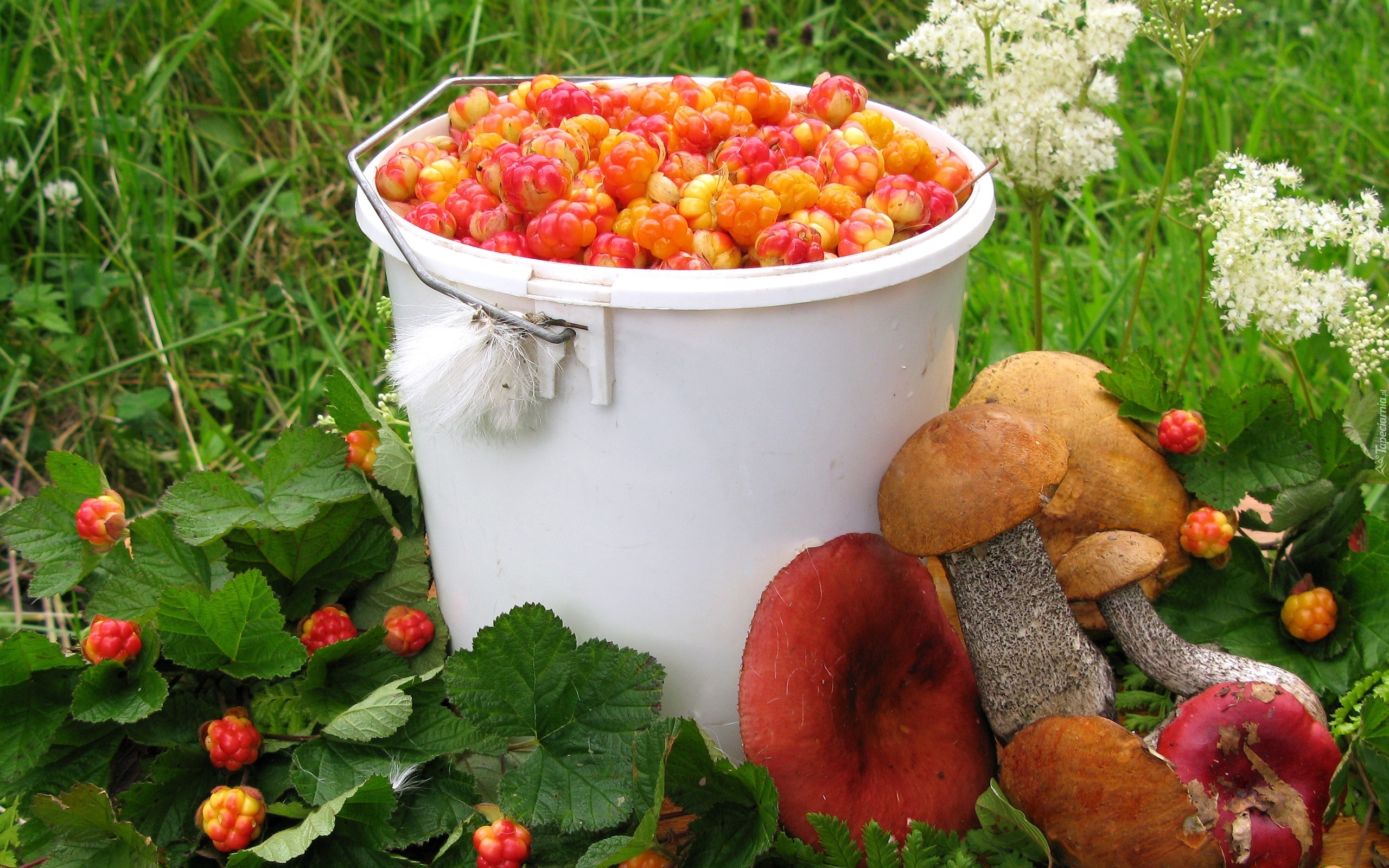 Edytor tapety: Grzyby, Wiadro, Maliny