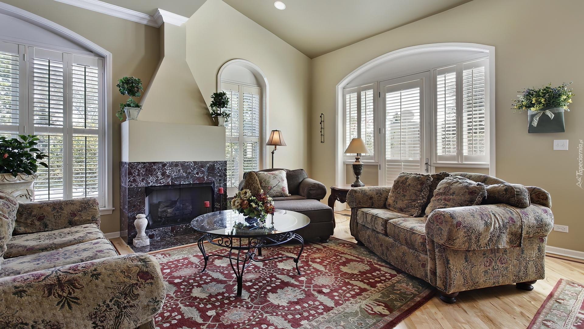 Edytor tapety: Salon, Okna, Dywan, Kominek