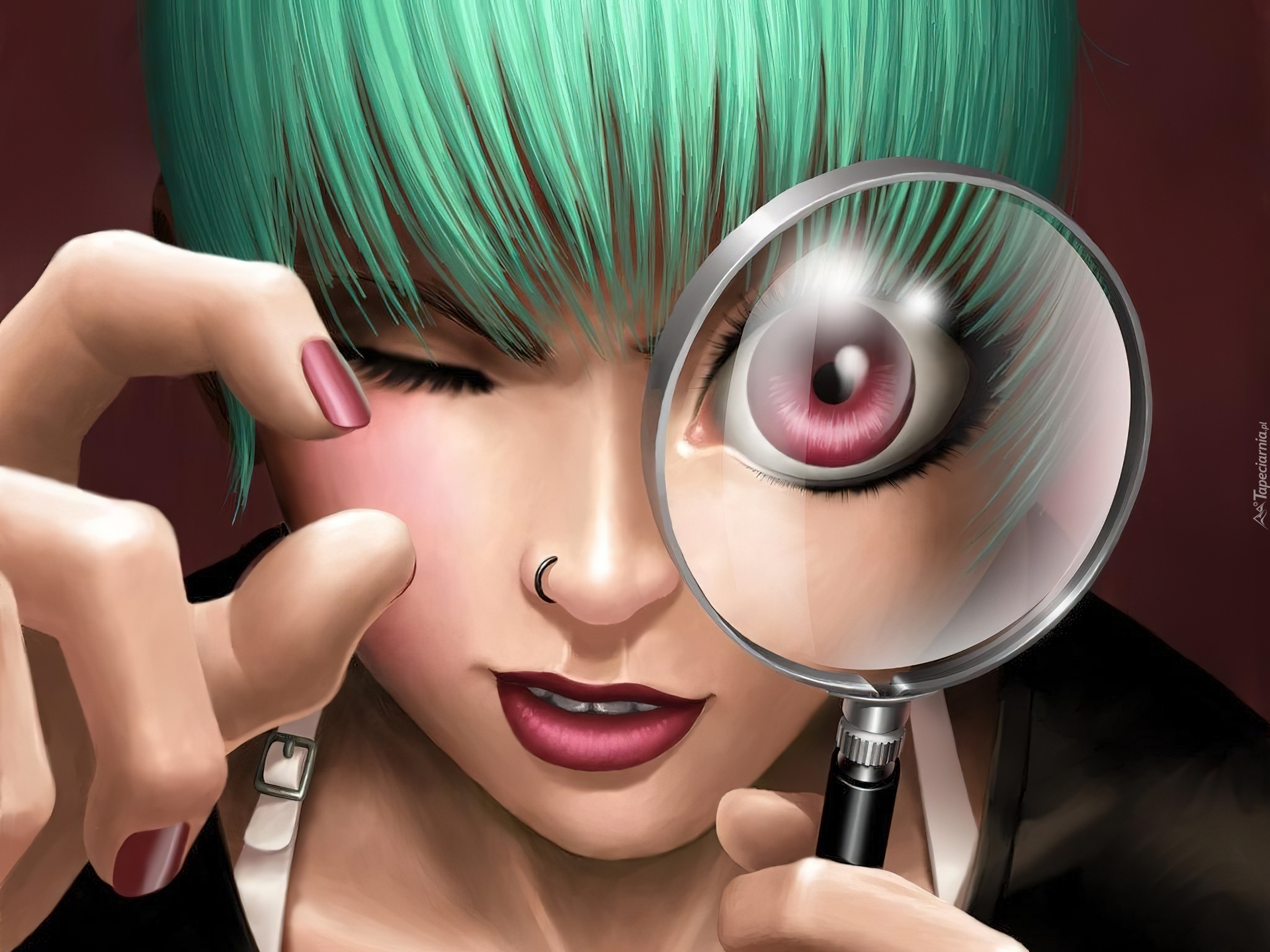 Edytor tapety: Dziewczyna, Kolczyk, Palce, Oko, Lupa