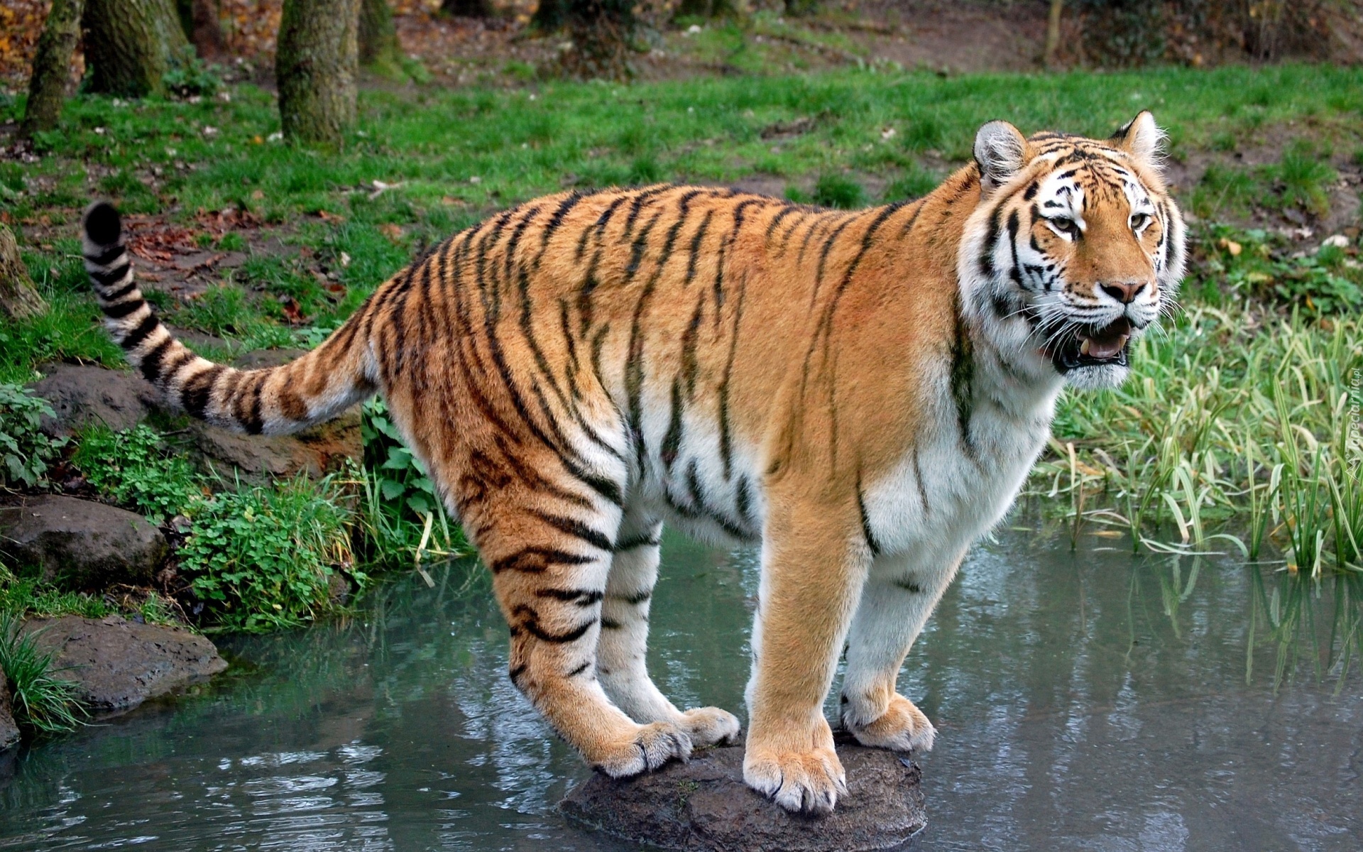 Edytor tapety: Tygrys, Kamień, Woda, Zieleń