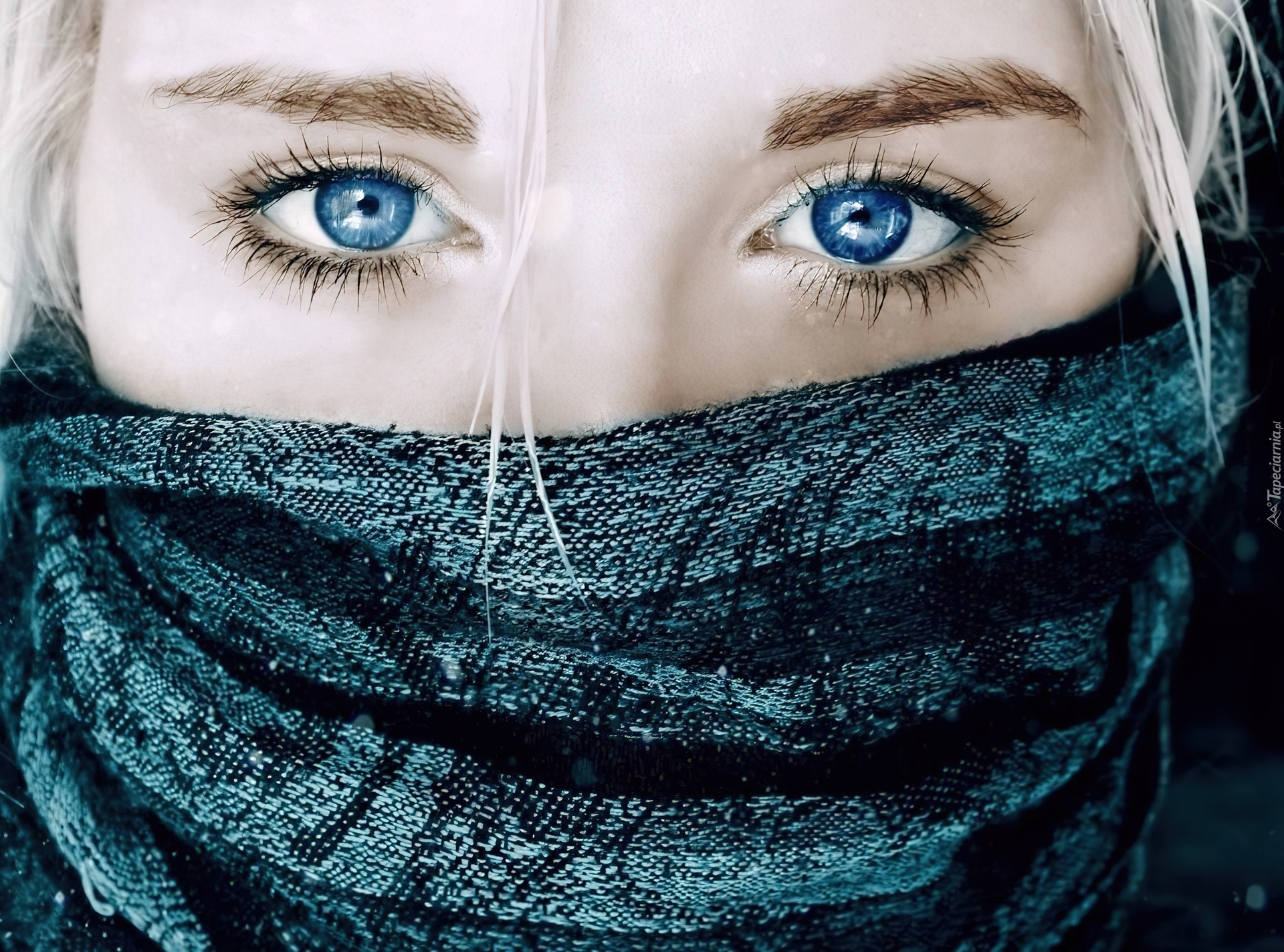 Edytor tapety: Kobieta, Niebieskie, Oczy, Szal