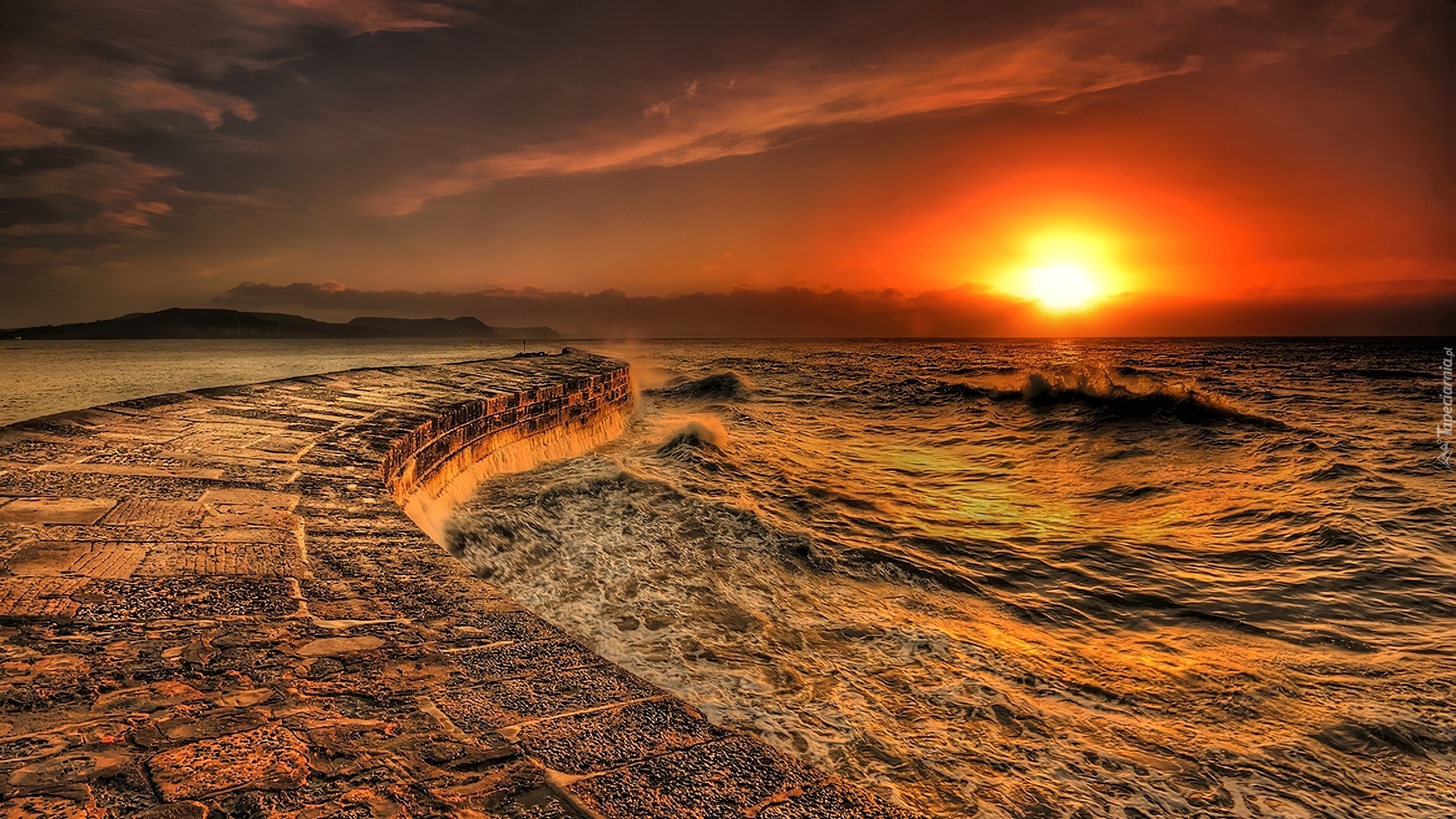 Edytor tapety: Zachód, Słońca, Morze, Murek