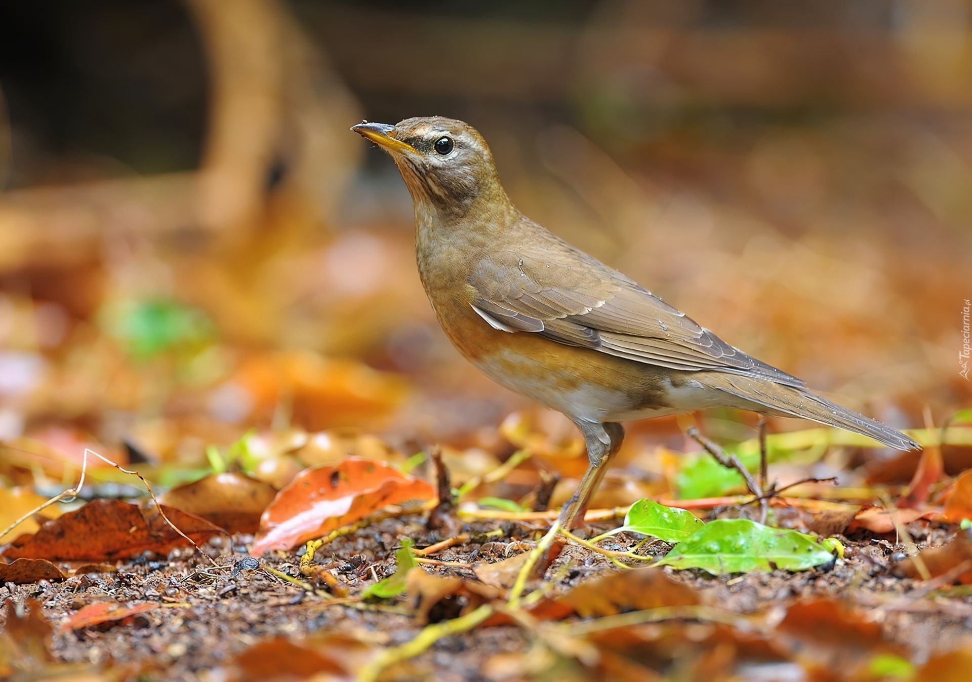Edytor tapety: Drozd Oliwkowy, Liście