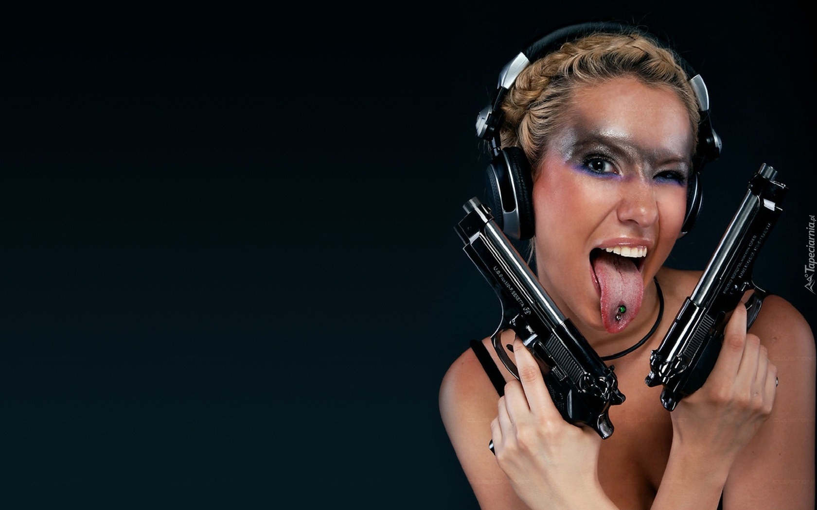 Edytor tapety: Dziewczyna, Broń, Słuchawki