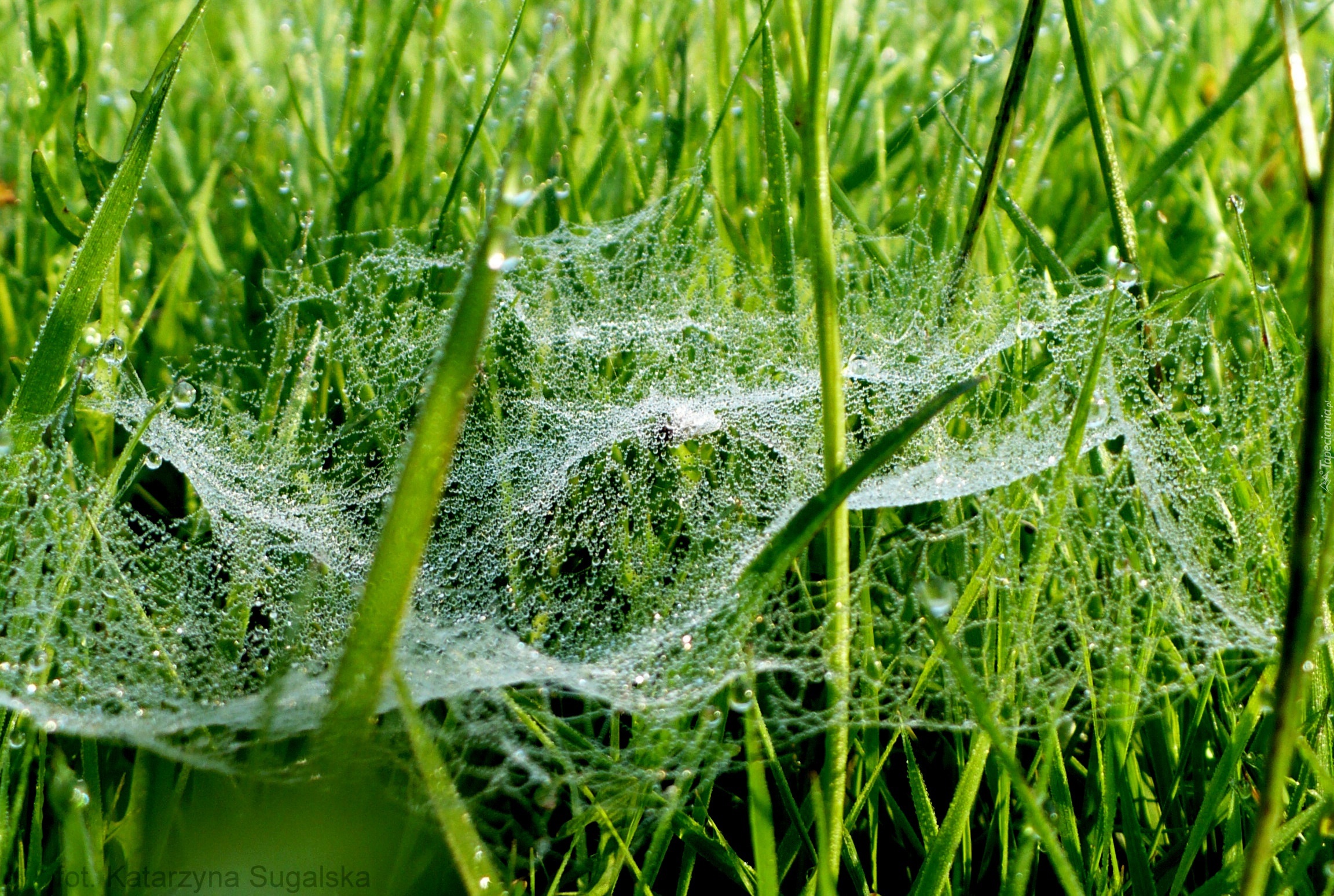 Edytor tapety: Krople, Rosy, Pajęczyna, Trawa