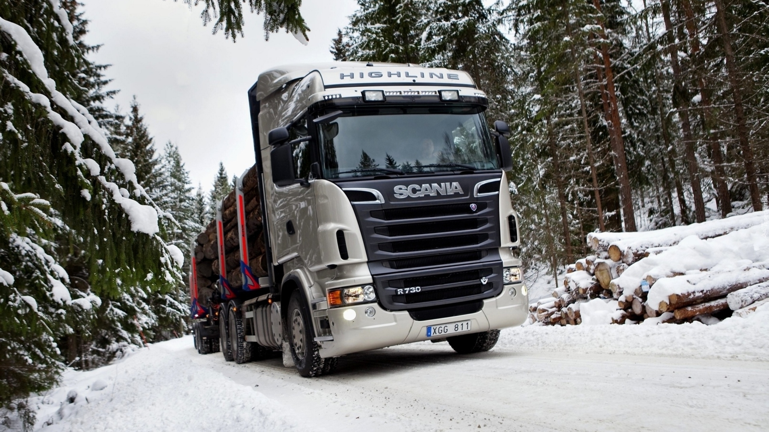 Edytor tapety: Scania R730, Ciężarówka, Drewno, Śnieg