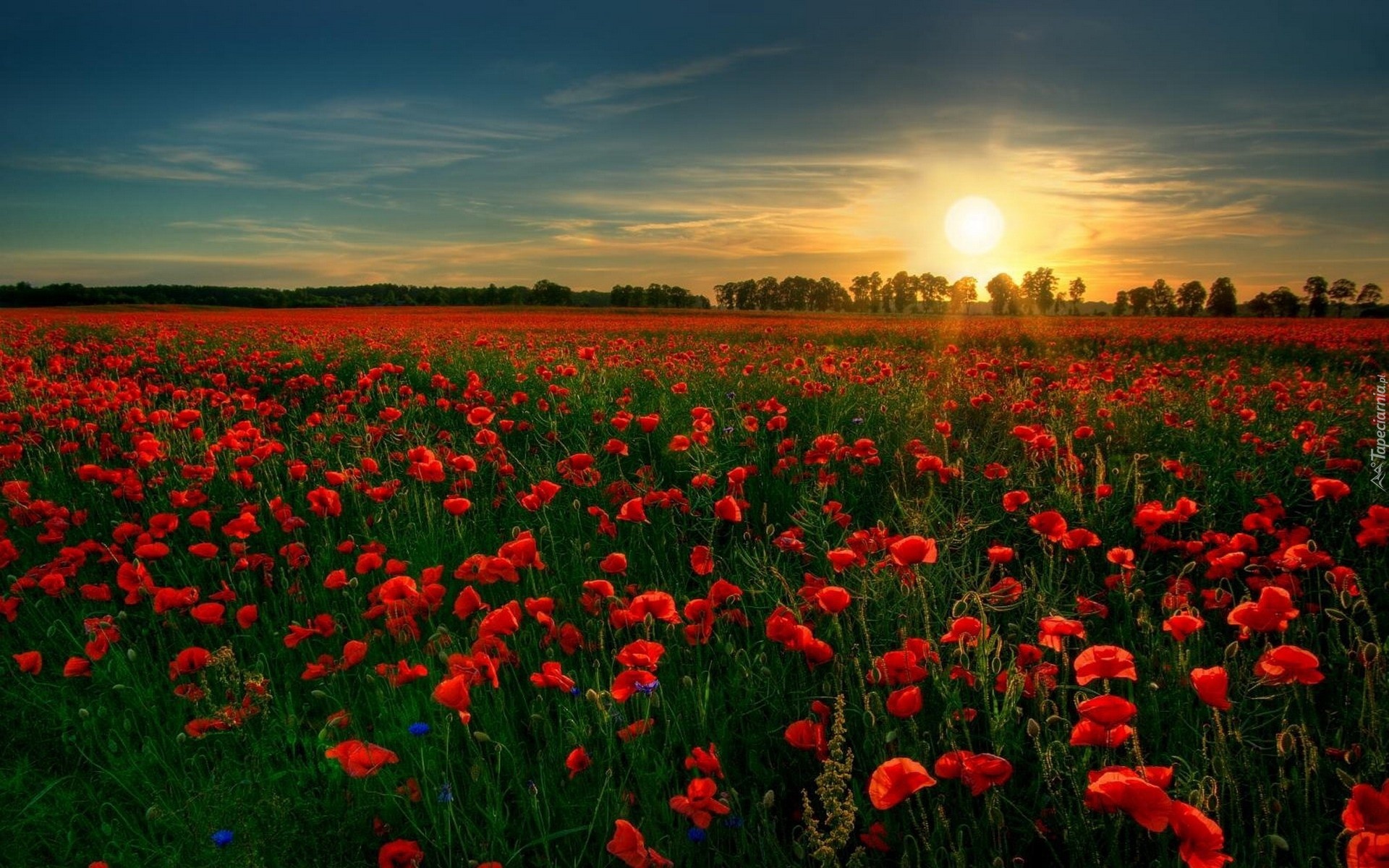 Edytor tapety: Maki, Pole, Zachód
