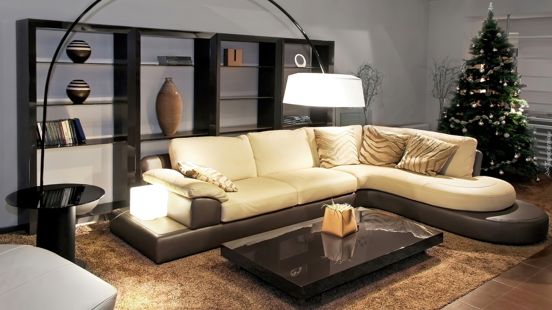 Edytor tapety: Pokój, Narożnik, Choinka, Stolik, Regał, Wazony, Lampa