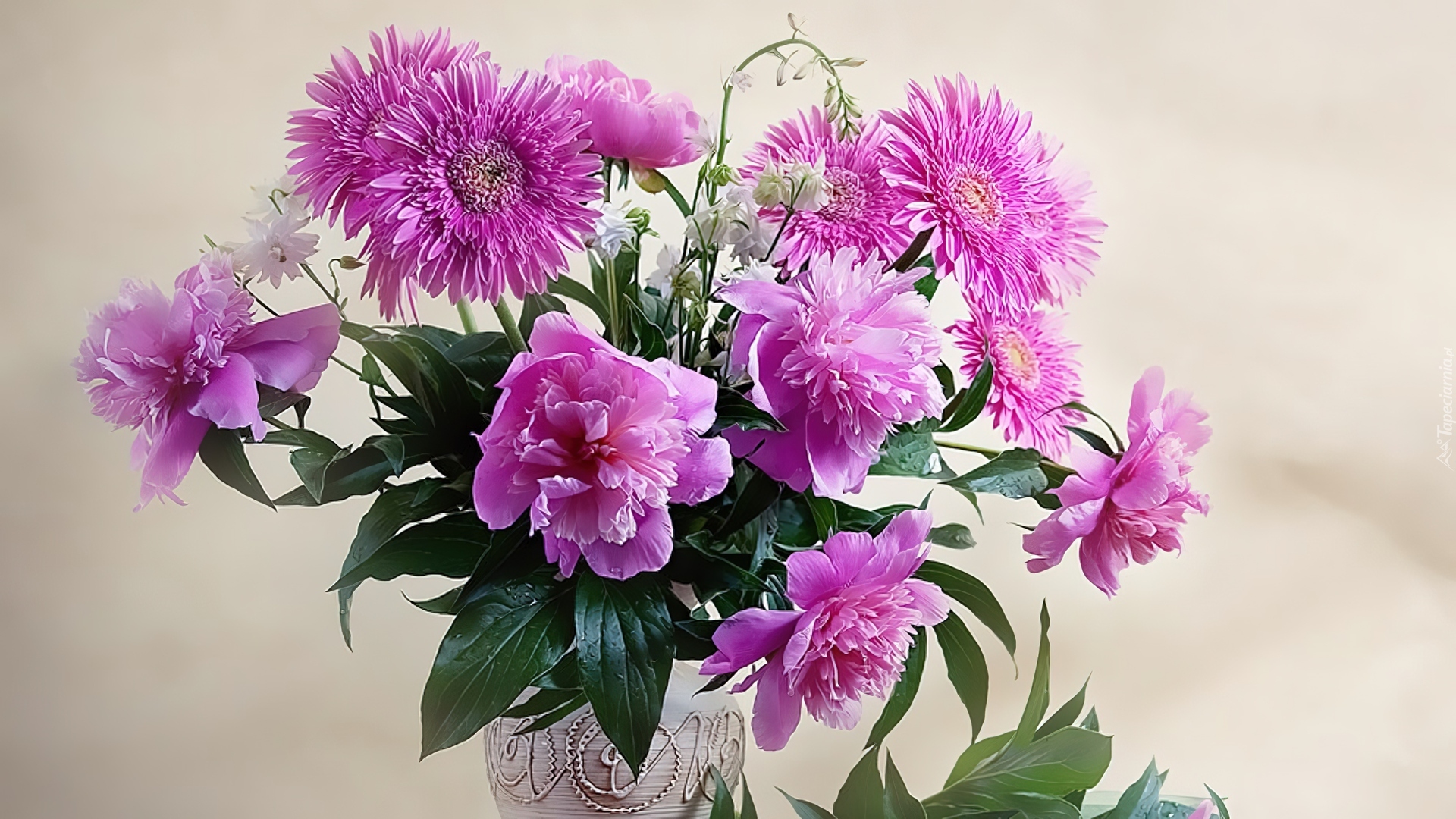 Edytor tapety: Flakon, Bukiet, Piwonii, Astrów