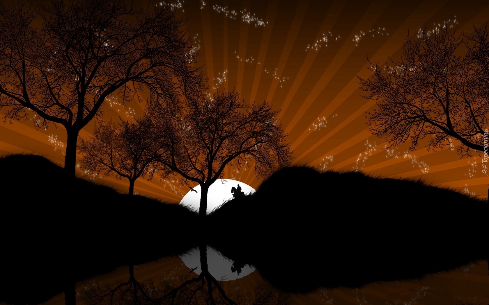 Edytor tapety: Promienie, Zachód, Słońca, Jeździec